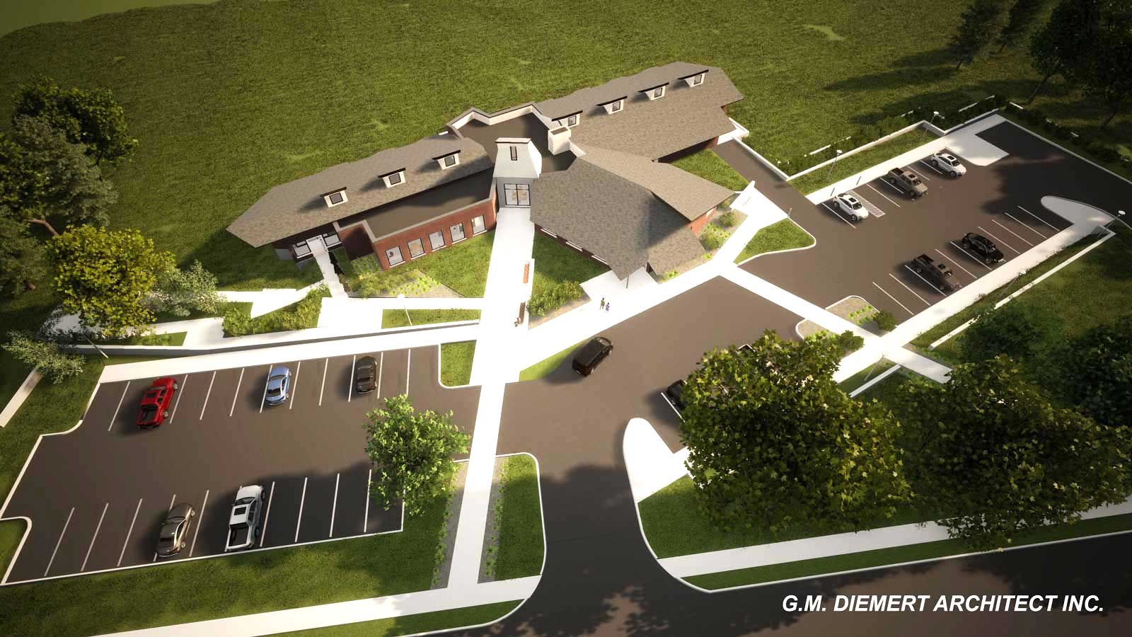 An aerial view of the Saugeen Hospice final build. Rendering from Saugeen Hospice website