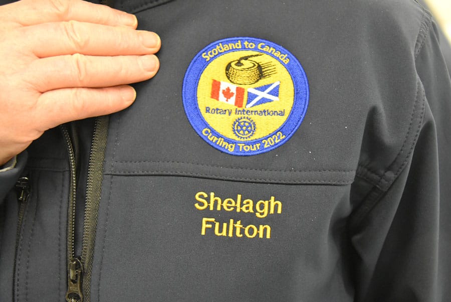 This is the badge, seen on Shelagh Fulton’s jacket, specially made for the 2022 tour. The next exchange will be next year, when members of the Fergus Club will visit Scotland.