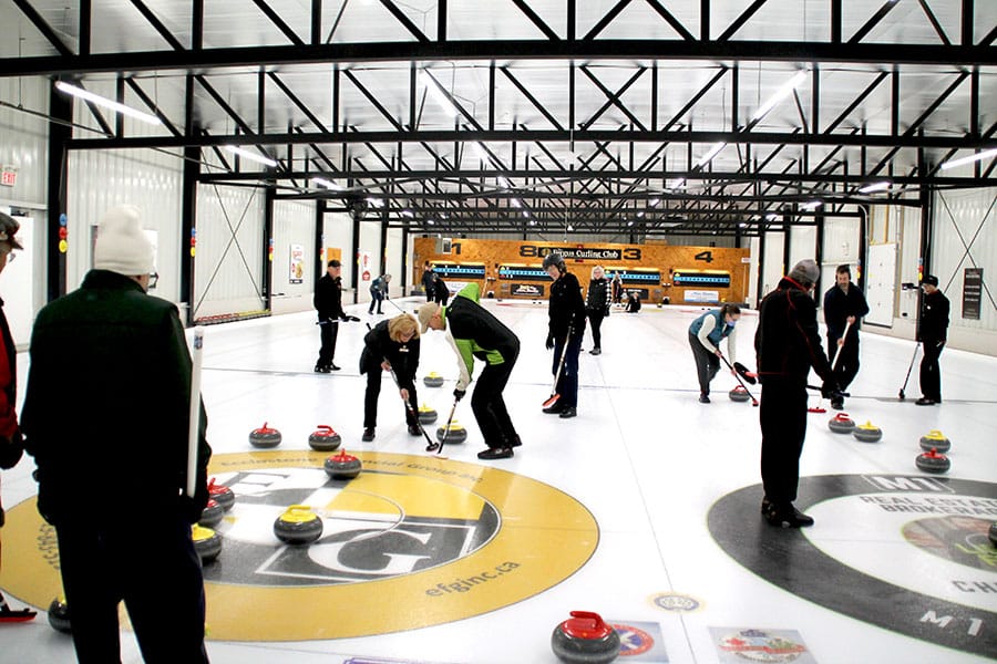 Hurry hard – The Fergus Curling Club has an active roster on Wednesday afternoons for its seniors mixed league.