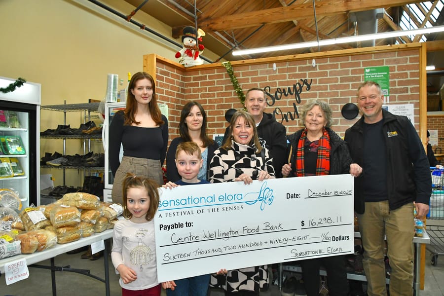 On Dec. 18 Sensational Elora delivered a $16,298 cheque to the Centre Wellington Foodbank, which is experiencing a surge in clients amid rising grocery prices.