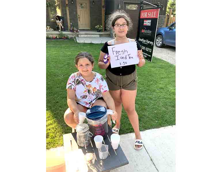 Ice tea entrepreneurs – With the mercury climbing on Canada Day, July 1, Maya Polyzotis and her sister Alivia Polyzotis decided to set up a roadside stand and offer ice tea to passersby.