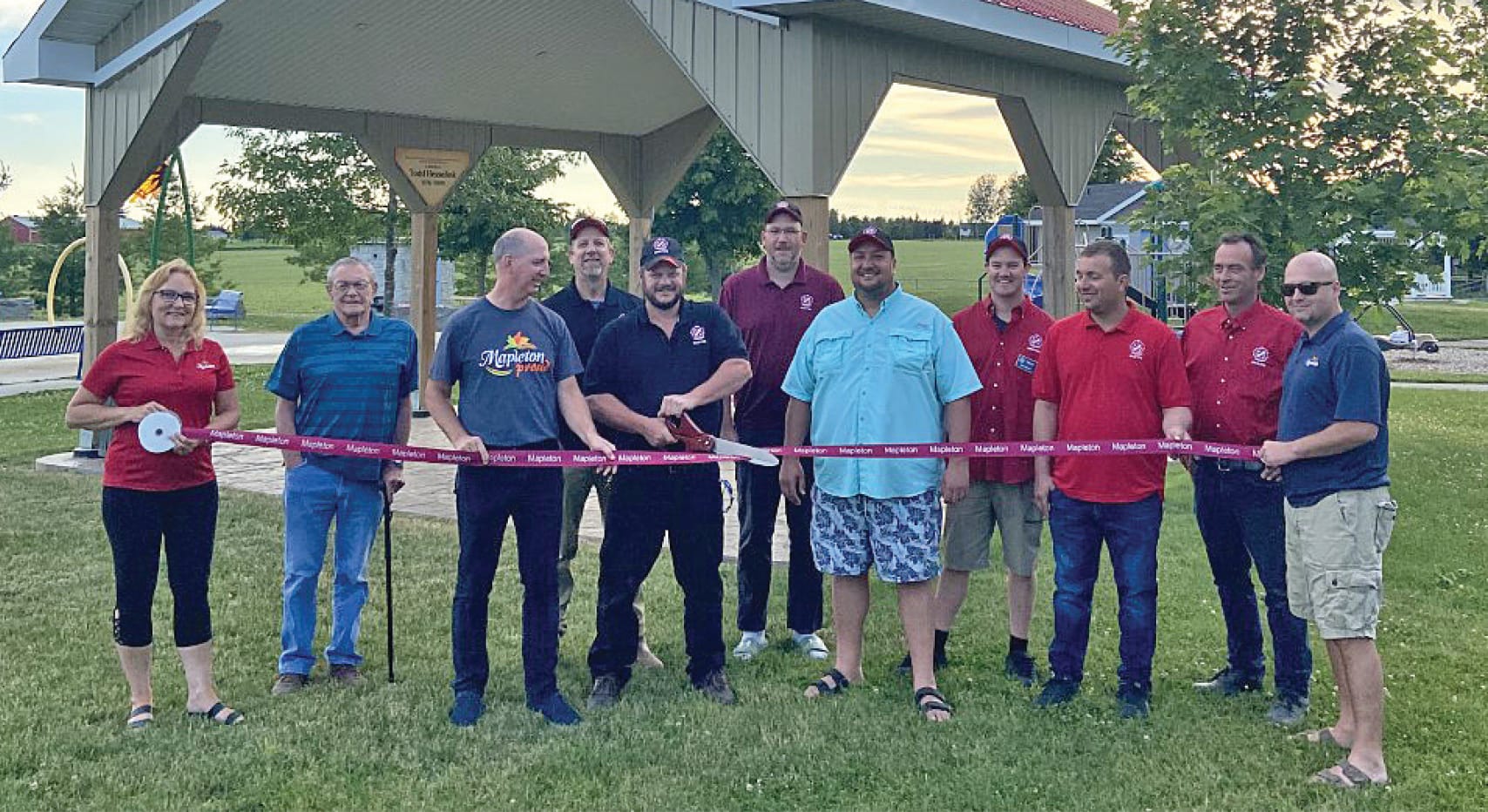 Shade shelters – The Kinsmen Club of Drayton had a ribbon cutting to officially open two new shade shelters. After recognizing the need at the ABC and Kinsmen parks in Drayton, the club began making plans in 2019 and opted to take on the bulk of the building to decrease costs so they could build two shelters. Ribbon cuttings were held at both shelter locations, with Mapleton Mayor Gregg Davison and councillors Marlene Ottens, Denis Craven and Mike Martin joining club members. Submitted photos