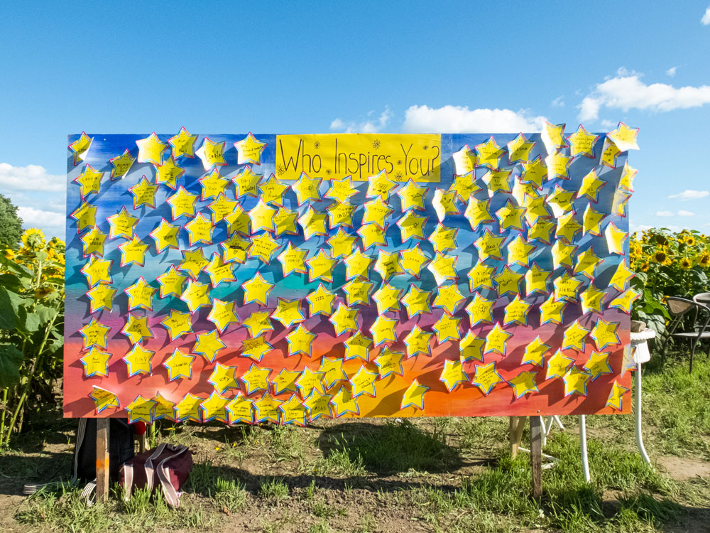An wall of inspiration at the 2021 Shine Your Light Sunflower Tour held at the Ottens’ family farm near Moorefield on Aug. 14. Photo by Jordan Snobelen