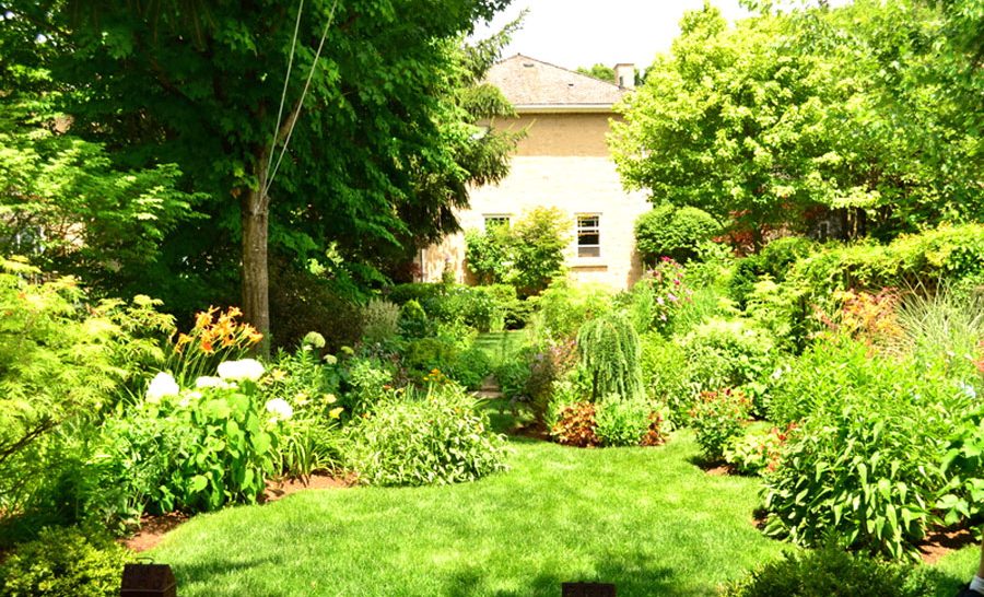 The 1/2-acre property is now full of stunning gardens. It emphasizes perennial plants of varying leaf colours and textures.