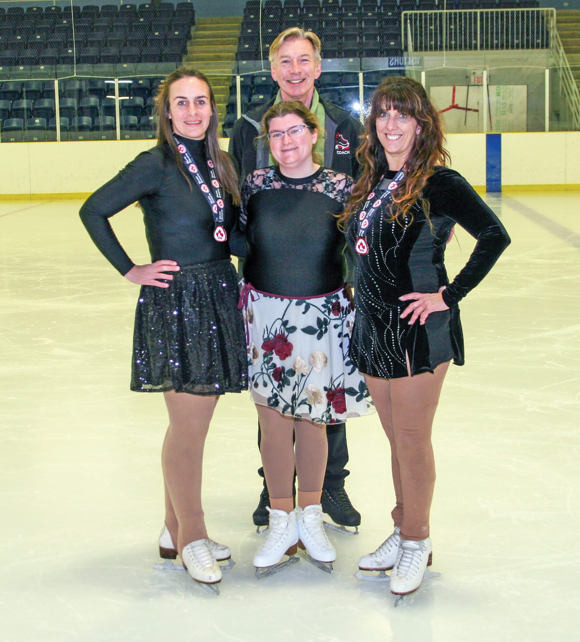 These athletes, pictured with their coach, Jack Langenhuizen, will compete next at the Adult Nationals in March 2025 in Kanata, Ont.