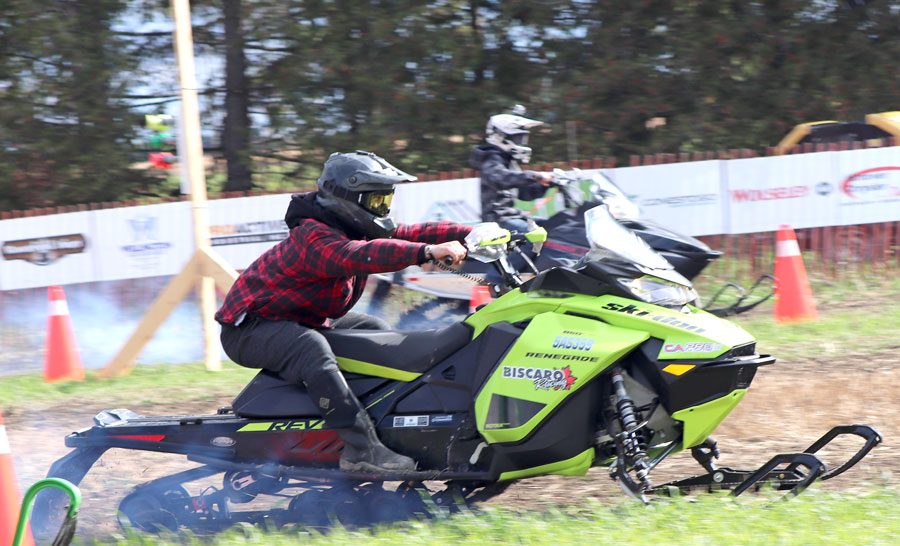 No snow required – The engines were revving and the mud was flying at the third annual Moorefield Optimists Grass Drags on Oct. 15 at Driscoll Farms in Mapleton. A large crowd braved the cooler temperatures to cheer on their favourites as snowmobilers raced their machines on the turf.