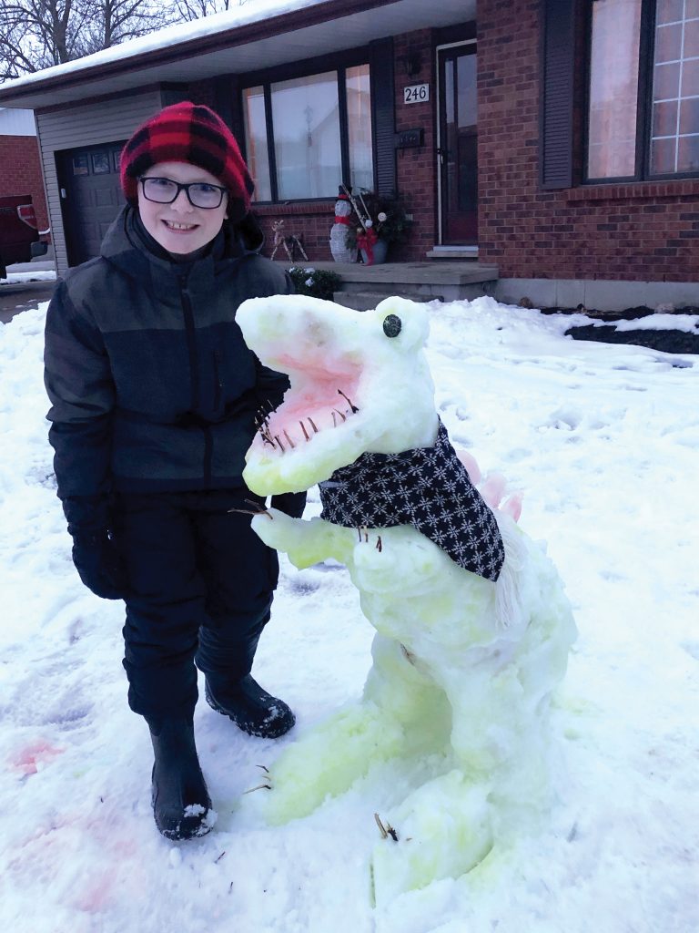 Snow Sculptures with a Twist – The Clifford Rotary Club and Minto Mental Health recently announced the winners of what they are hoping will become an annual snow sculpture competition. Ben Rogers and his dinosaur placed second.