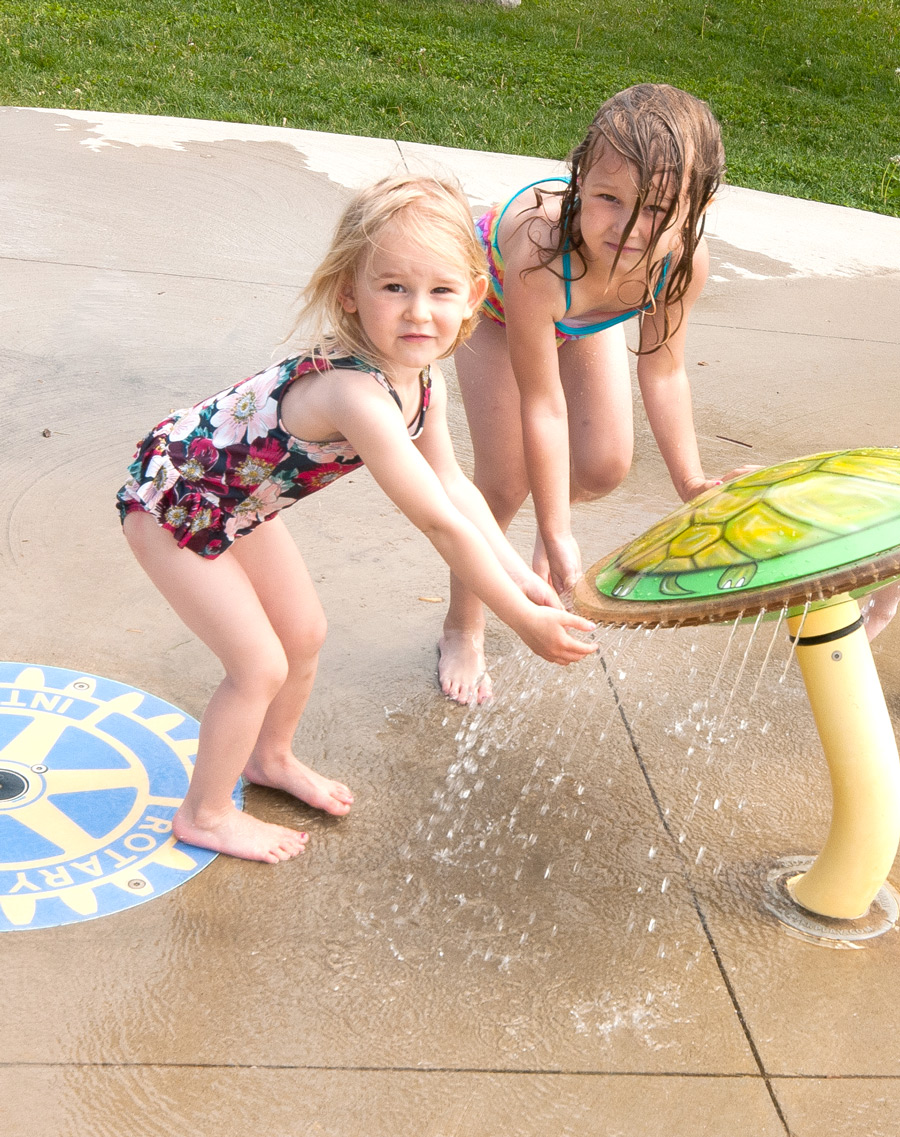 Samantha and Hailey Bearinger cooling off with water features.