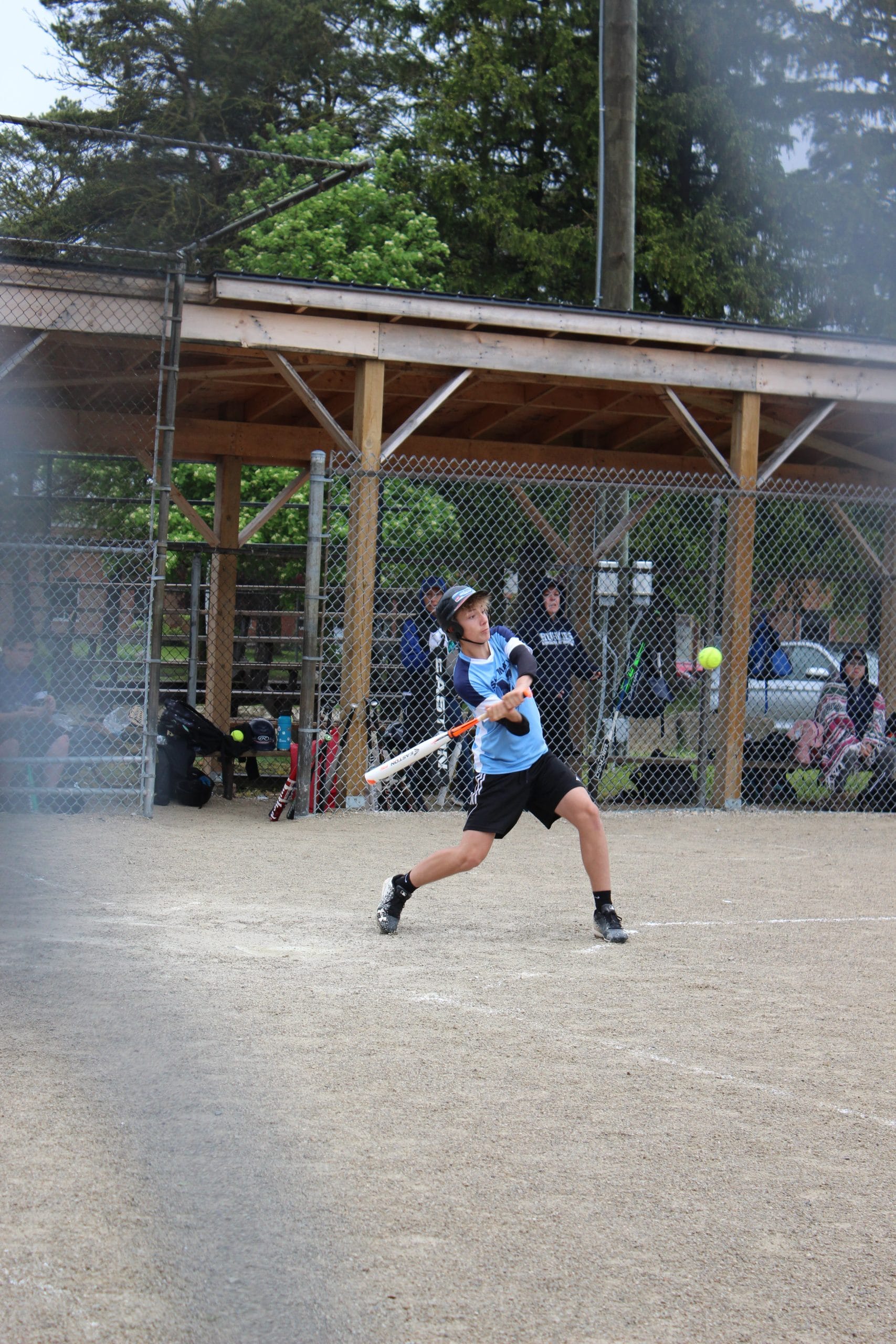 St. Marys Elora student Chayce, keeps his eye on the ball as he takes a swing.