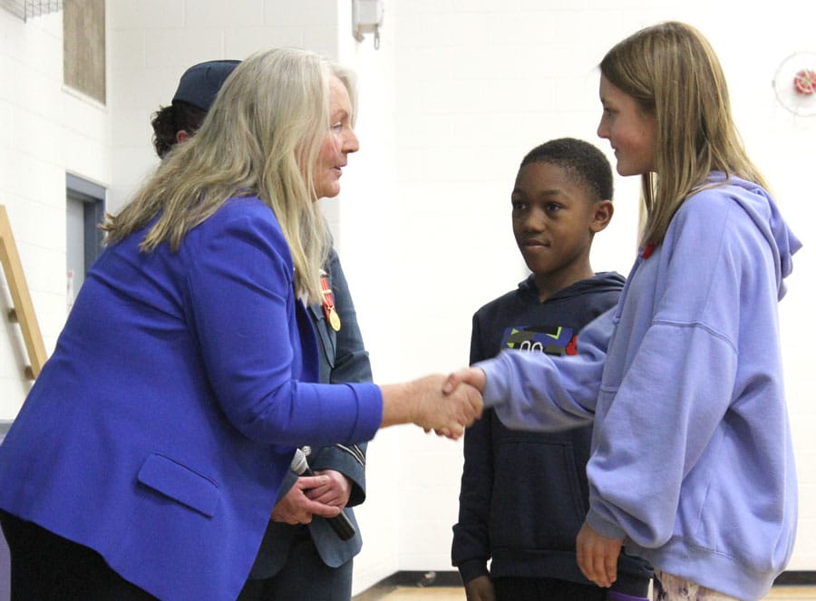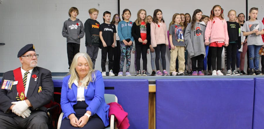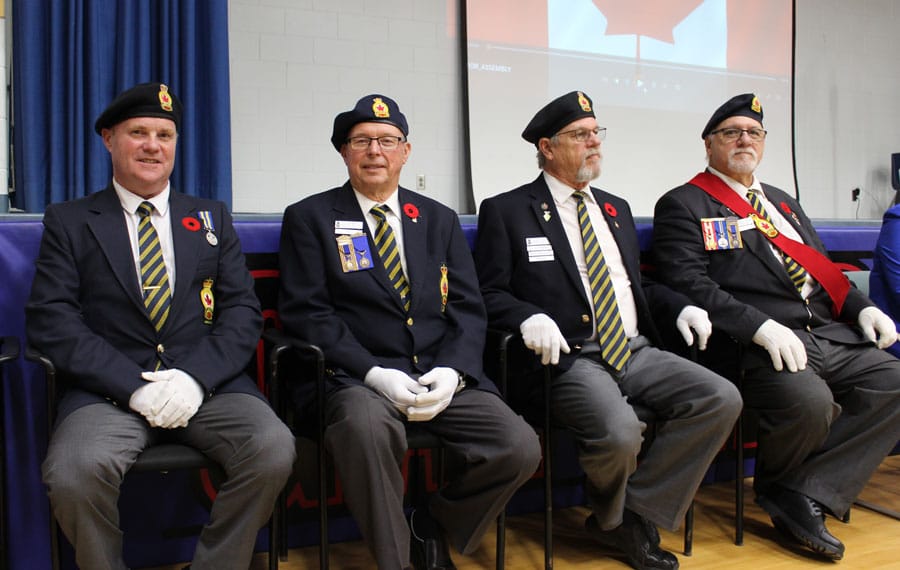 St. Joseph Catholic School in Fergus welcomed veterans into its bright gymnasium for a Remembrance Day ceremony organized by French teacher and air cadet captain Pam Pegelo.