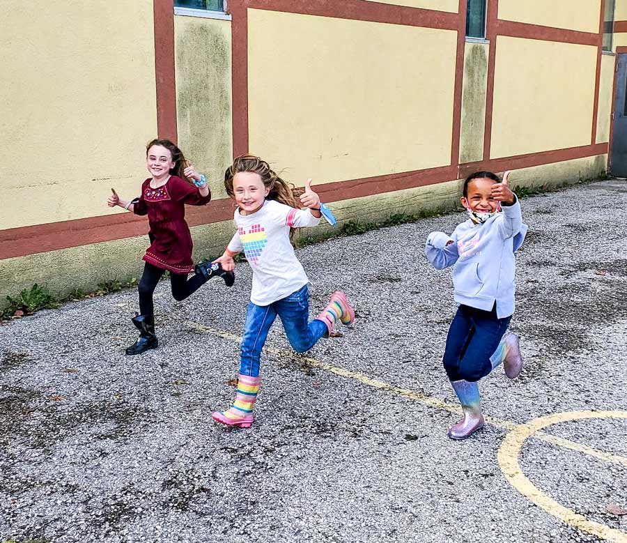 Running for Terry – Students at St. Mary Catholic School in Mount Forest participated in the annual Terry Fox Run/Walk on Oct. 2. From left: Grade 2 students Kenzie Leva, Rayne Bearinger and Millie Casimir gave a thumbs up during the event. Classes participated throughout the day, covering more than 600km as a school and raising over $600 for the Terry Fox Foundation.
