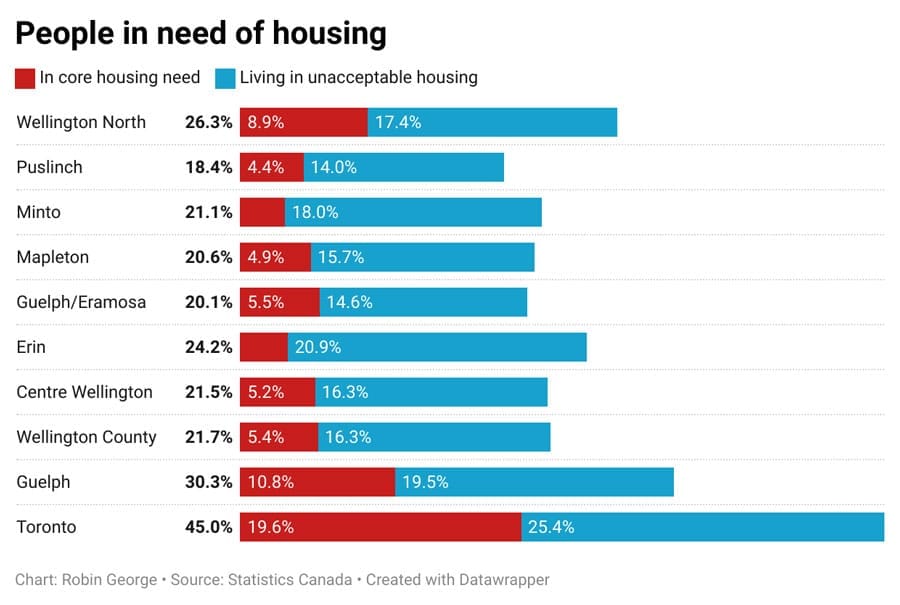 About 5% of the county’s population is in core need of housing and another 16% of people here are living in housing that Statistics Canada considers unacceptable, and are not able to afford to move.