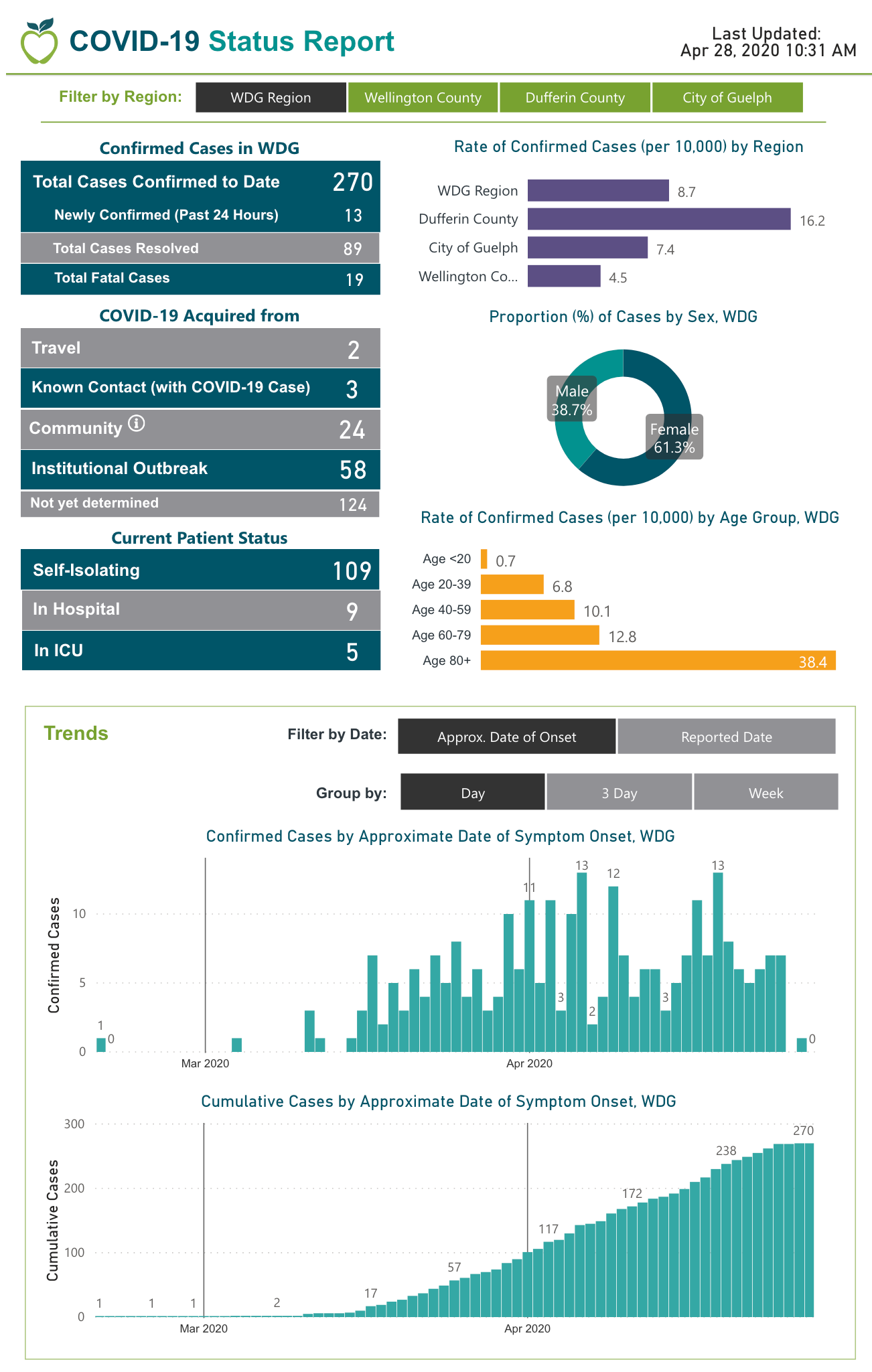 As of April 28, there are 270 total COVID-19 cases across the WDGPH region, with 89 resolved cases and 19 deaths.