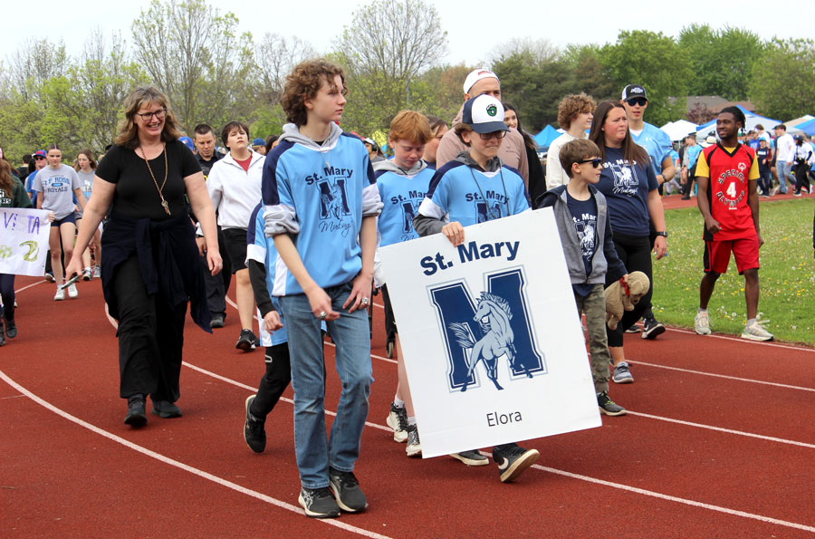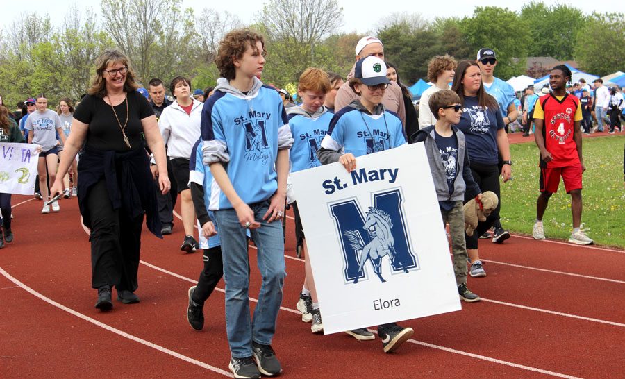 Piper Peter Hummel led Special Olympics Track and Field Day athletes in a parade around the track to kick off the annual event at St. James Catholic High School on May 15. Photos by Robin George