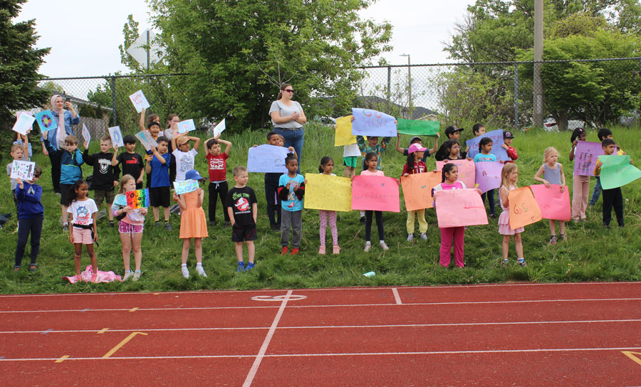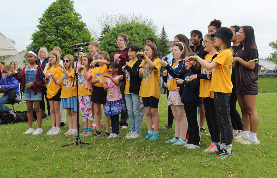 Athletes then gathered on the running track’s centre field for short speeches from officials, including directors of education Peter Sovran and Michael Glazier, and a performance of the national anthem from St. John (Guelph) Catholic School students, in both English and sign language.