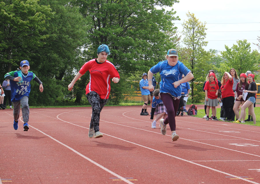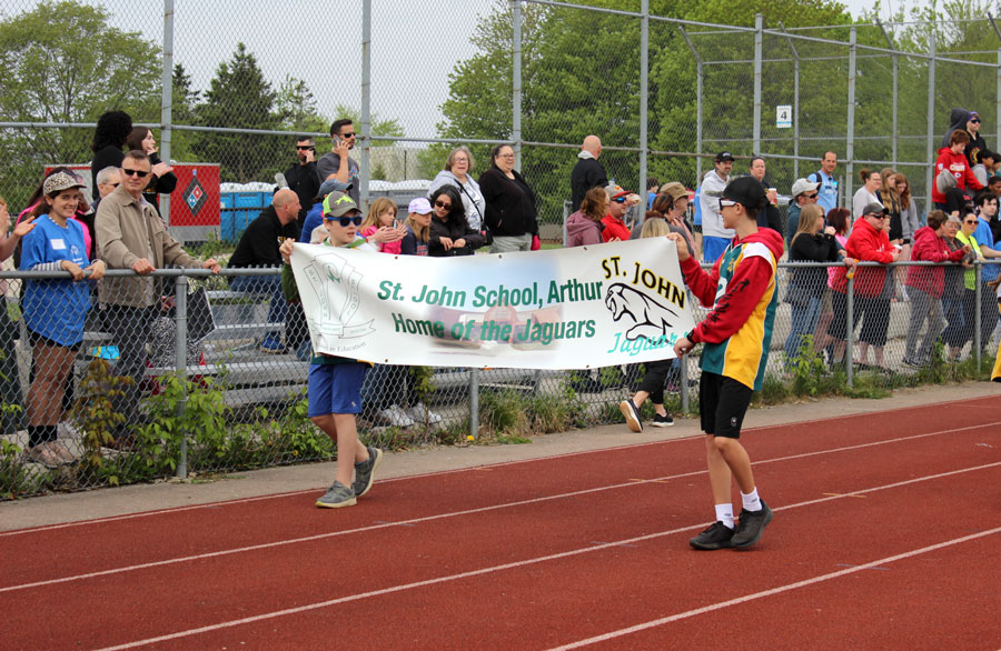 The Special Olympics event began with a parade around the track, led by piper Peter Hummel and a John Galt Public School student carrying an Olympic torch.