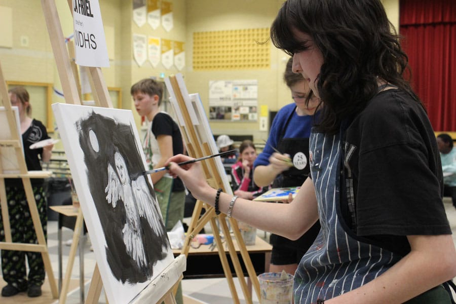 The Centre Wellington students are no strangers to speed painting – there’s a club at the school called Battle of the Brushes that meets weekly to practice creating 20-minute paintings.