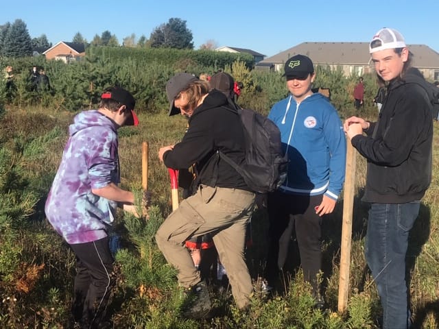 MOUNT FOREST – Students and staff at Wellington Heights Secondary School (WHSS) have transplanted 80 red pine trees along the perimeter of the school property.