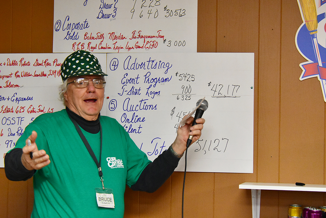 For the second year in a row the Curl for a Cause bonspiel crossed the $50,000 mark. In 14 years Bruce Hawkins, above, and his committee have raised nearly $500,000 for local organizations. This year six local groups will share proceeds from the event. Jake Drexler raised the most of all 96 curlers involved, with $2,600. Photo by Bill Longshaw