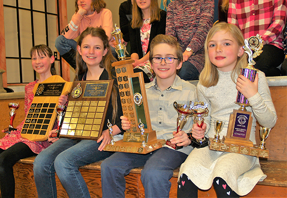 A 35-year public speaking tradition continued when the Belwood Lions Club hosted its annual effective speaking competition on March 5 at the Belwood Hall. Winners were, from left: Julia Gardiner, Intermediate French; Alexandria Fazekas, Intermediate English; Kolby Frankland, Junior English; and Shiloh Gitter, Junior French. Despite severe winter weather and a one-week postponement, 16 area students in Grades 4 to 8 from three area schools made presentations in English and French on a variety of topics. “When the dust settled and the judging completed, everyone was left amazed at what these young people accomplished,” officials stated. The intermediate section (Grades 7 and 8) included an impromptu segment in which each student prepared a two to three minute speech from a blind draw. The event was under the direction of co-chairs Denis Vinette and Ellie Montgomery, with the assistance of the rest of the club. The winners will go to the Lions District A-15 competition on March 30 in St. George. The results were as follows: Junior English: 1st, Kolby Frankland, East Garafraxa Public School; 2nd, Noella Mallany, John Black PS; 3rd, Alex Dickson, J. D. Hogarth PS. Junior French: 1st, Shiloh Gitter, J. D. Hogarth; 2nd, Isaac Turner, J. D. Hogarth. Intermediate English: 1st, Alexandria Fazekas, East Garafraxa; 2nd, Soraya Hummel, John Black; 3rd, Talia Sawyer, East Garafraxa. Intermediate French: 1st, Julia Gardner, J. D. Hogarth; 2nd, Allish O’Donnell, J.D. Hogarth. Submitted by Wayne Robson