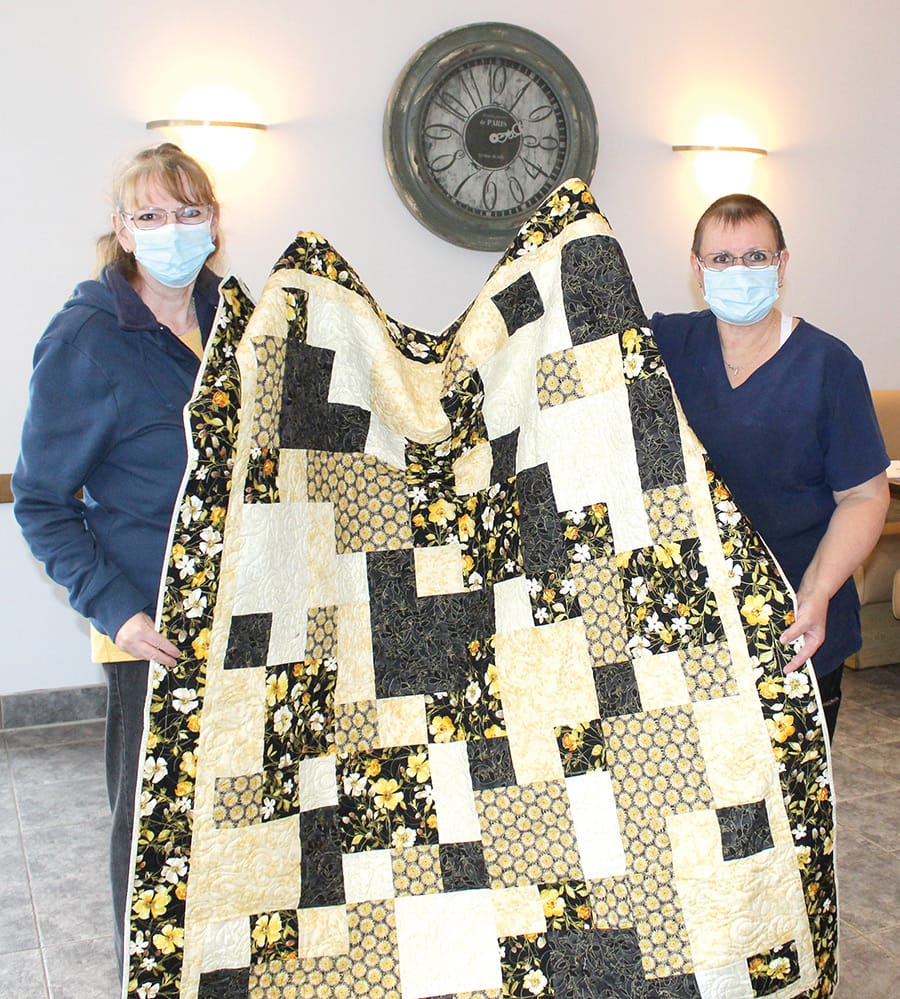 Last year, before the luncheon was cancelled, a quilt in tones of yellow and black was on display for a draw. This year, the quilt draw was held on April 30 with the winner being Audrey Morden of Harriston. The quilt was donated by the Creekbank Sewing Machine Shop at Mount Forest.