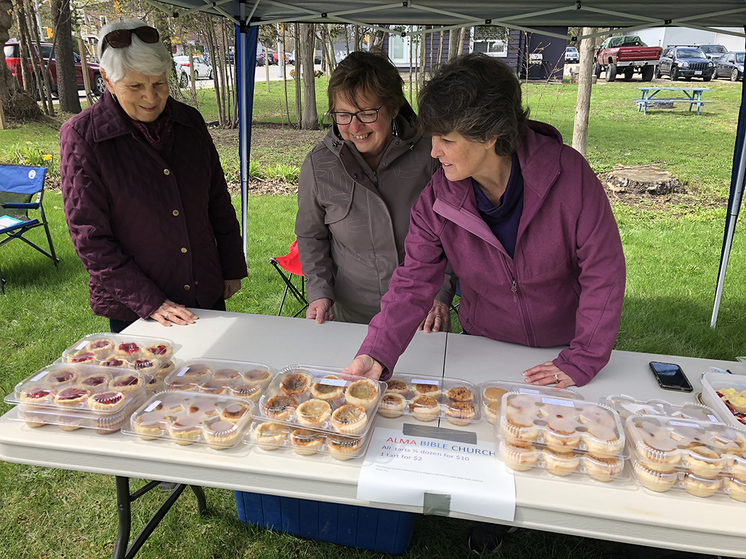 Plenty of local vendors were on hand with tons of tarts at the Tarts Galore Festival at St. Andrew’s Presbyterian Church in Alma on May 11. Volunteers at the Alma Bible Church booth included, from left: Leone Babineau, Mildred Martin and Cindy Martin. Photo by Patrick Raftis