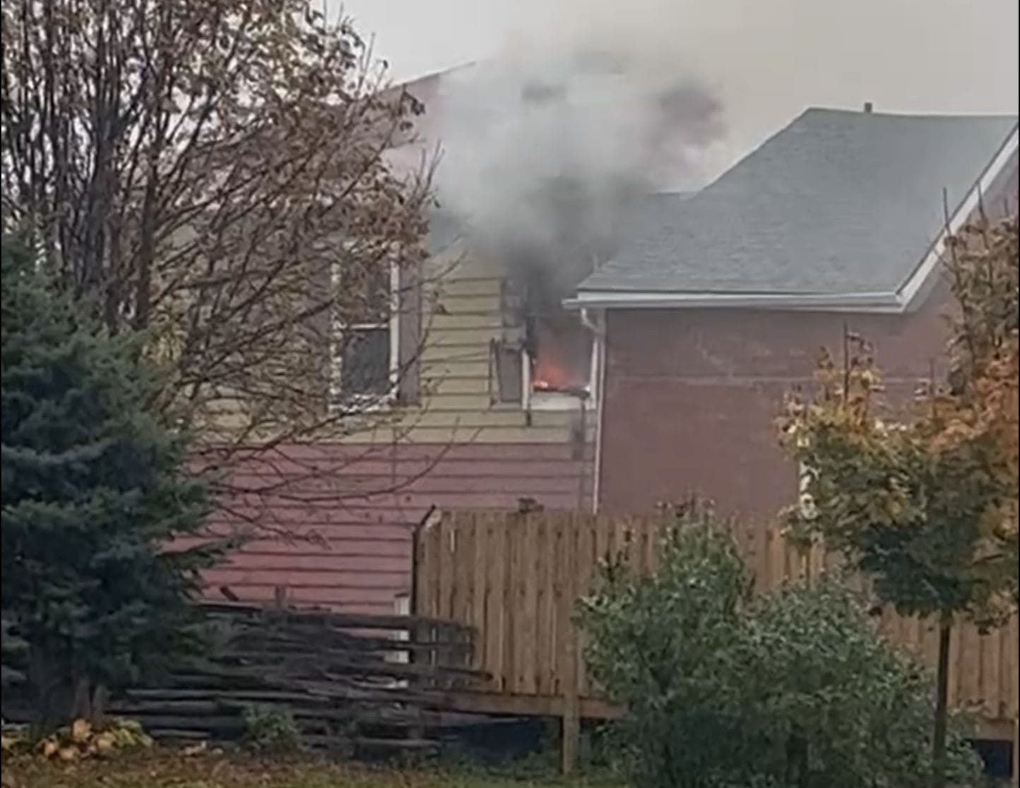 In a video recorded at the scene around 11:55am on Oct. 26, grey smoke is seen spewing from what appears to be an apartment window on the east side of the building.