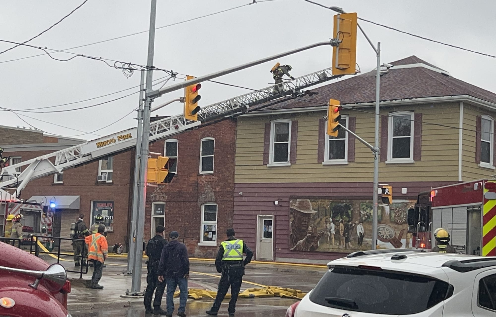 ARTHUR – Elora resident Wendy Mudd was at the Arthur Family Health Centre on Thursday when she noticed flames coming from a window above the IScreamm Cone Company building at the intersection of Charles Street East and George Street (Highway 6), in downtown Arthur.
