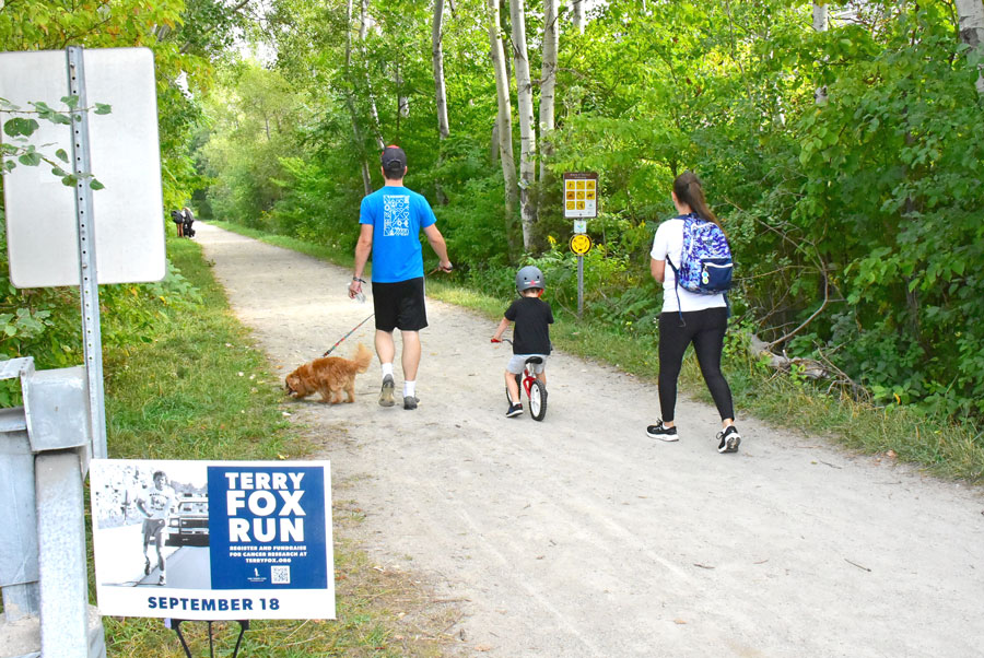 Terry Fox Run – A family heads out on the Elora Cataract Trail for the Fergus Terry Fox Run on Sept. 18. About 50 runners, bikers and walkers travelled about five kilometres from Forfar Park to the Shand Dam and back along the trail. Chris Mulligan, chair of the event, said he anticipated the run would raise about $6,000.