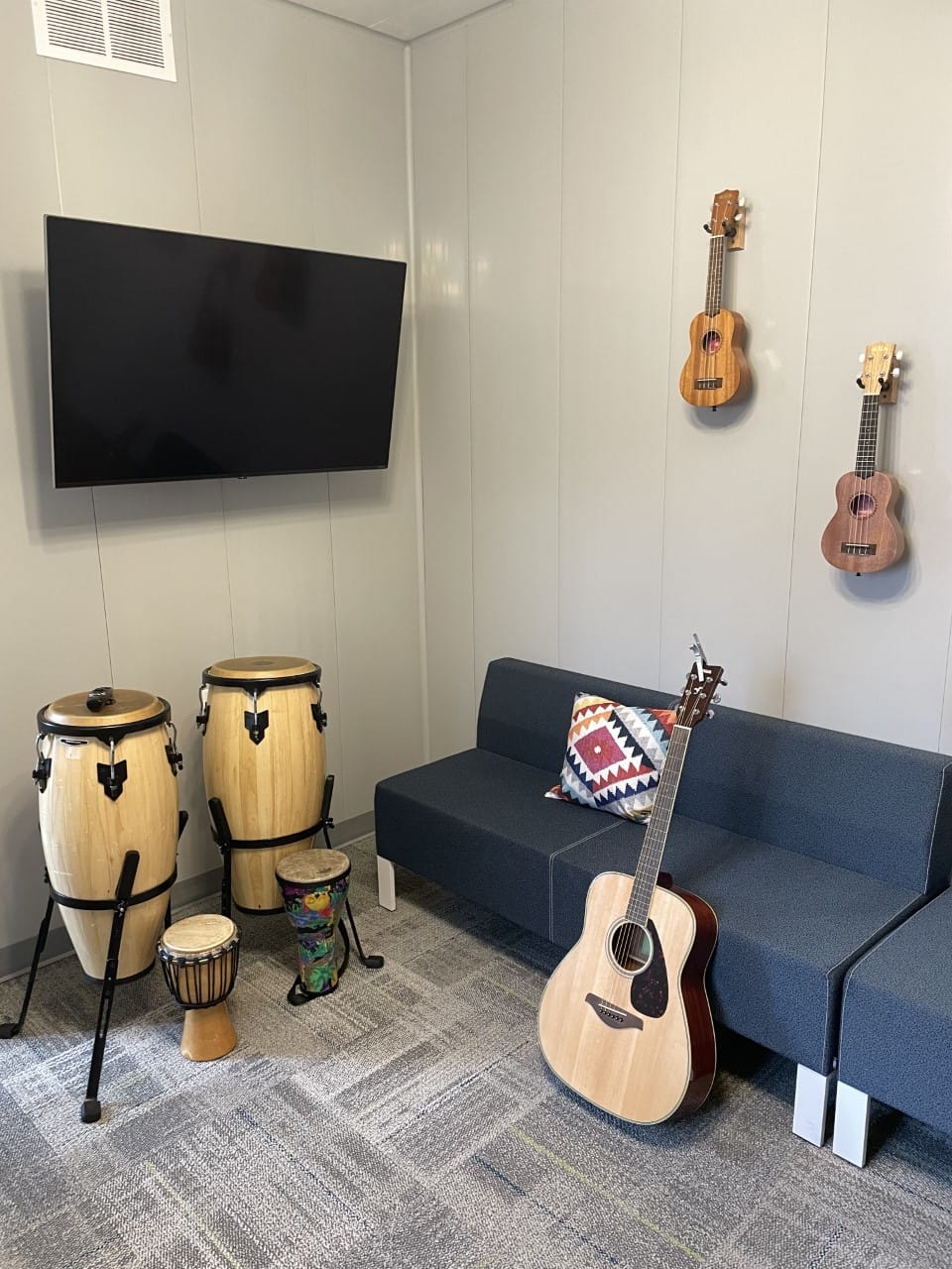 The Grove – Palmerston features a large games room, spaces for counselling, meeting and study areas as well as a music room, kitchenette and lunch tables.