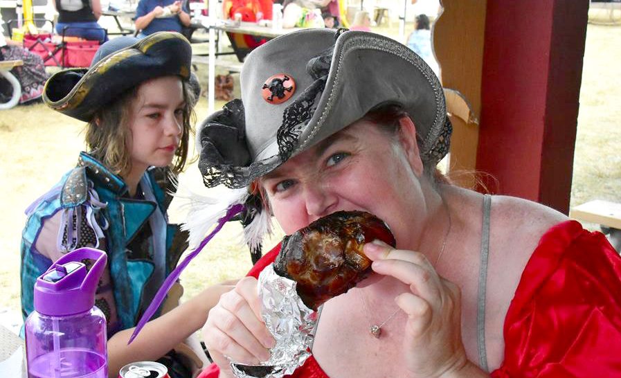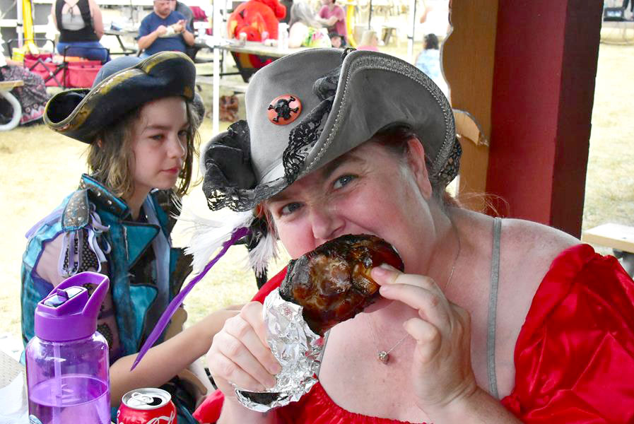 The Ontario Pirate Festival returned to Marden Park SubmittedAugust 3, 2022 @ 5:29 amNews Aye matey! – The Ontario Pirate Festival returned to Marden Park from July 30 to Aug. 1. Live shows included magic and juggling, music, a mud show and a falconry demonstration. Photos by Bill Longshaw Finnley, Bowen and Evan Bryant from Elora get acquainted with a red dragon. Among the more popular food offerings were very large barbecued turkey legs like the one enjoyed by Marion Kletke of Kitchener. Several event attendees came dressed in pirate costumes from all over southern Ontario. This sailor, Kendrick Zimmermann from Toronto, found his inner pirate and took hold of the wheel to navigate his ship. Aye matey! – The Ontario Pirate Festival returned to Marden Park from July 30 to Aug. 1. Bill Longshaw