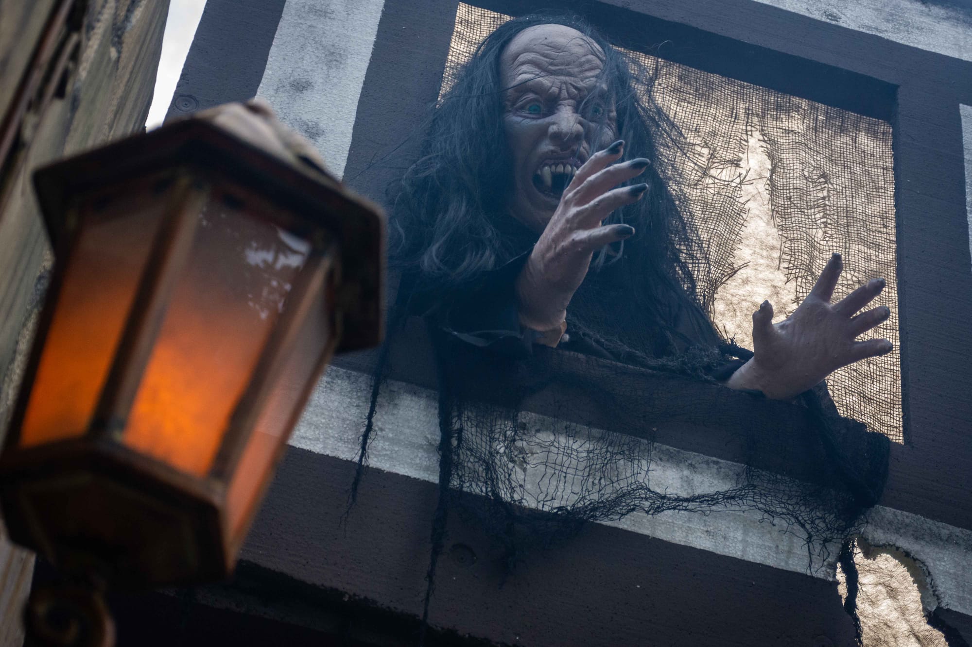 Past the cemetery, eerie sounds and rolling fog, villagers await in a town square fashioned after an old Bavarian village, complete with one-and-a-half storey building facades.