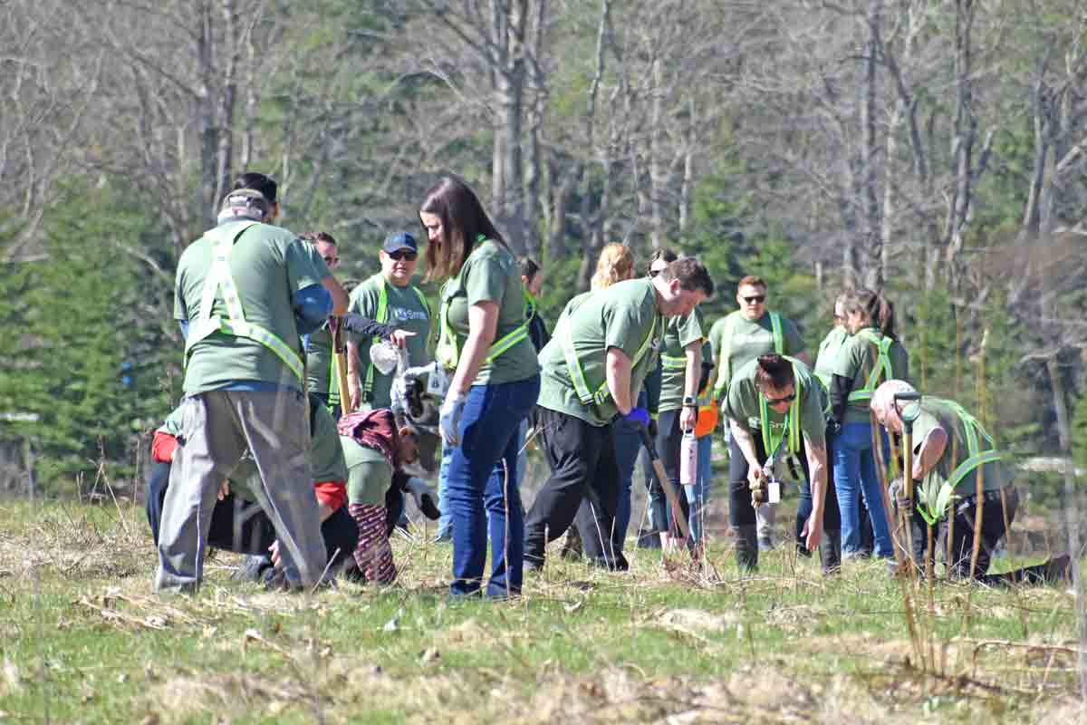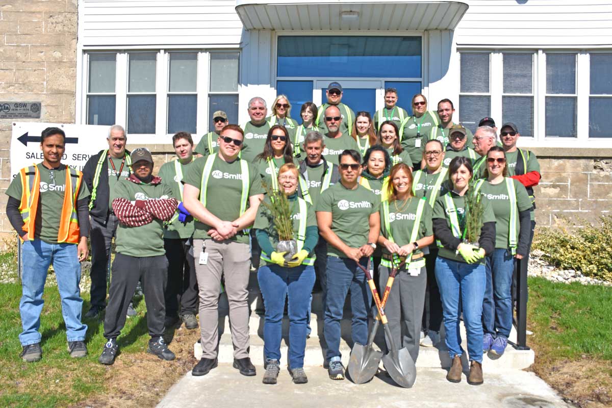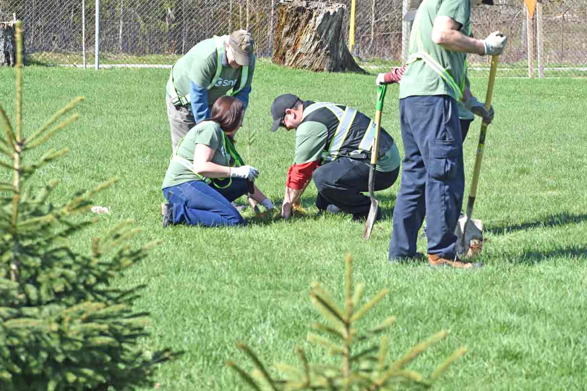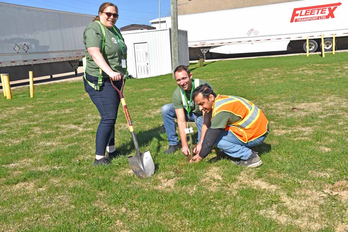 Say trees – Mother Nature blessed staff at AO Smith on April 22, Earth Day, with wonderful weather for planting trees. The company ordered about 100 trees from Wellington County’s Green Legacy program and they planted pine, sumac and white ash saplings on the property on Hill Street in Fergus. Photos by Joanne Shuttleworth