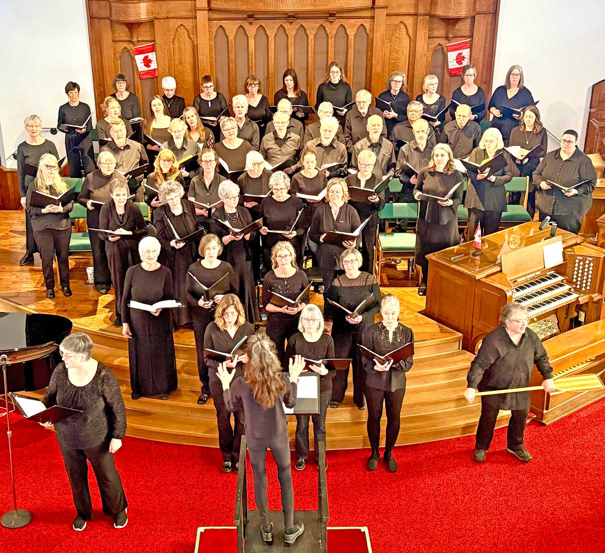 Members of the Centre Wellington Singers celebrated the choir’s 30th anniversary with a concert at Melville United Church in Fergus on April 25. The concert was aptly named Canada Eh! that featured Canadian songs. Ben Wright of the Barrel Boys also joined the choral group. PHOTO 1: The choir sang to a full house at the concert. Photo by Bill Longshaw. PHOTO 2: Conductor Melanie Steenburgh is in her first year with the singers. Photo by Duncan Hossack. PHOTO 3: Members of the Centre Wellington Singers celebrated the choir’s thirtieth anniversary with a concert at Melville United Church in Fergus on Sunday. Photo by Duncan Hossack.