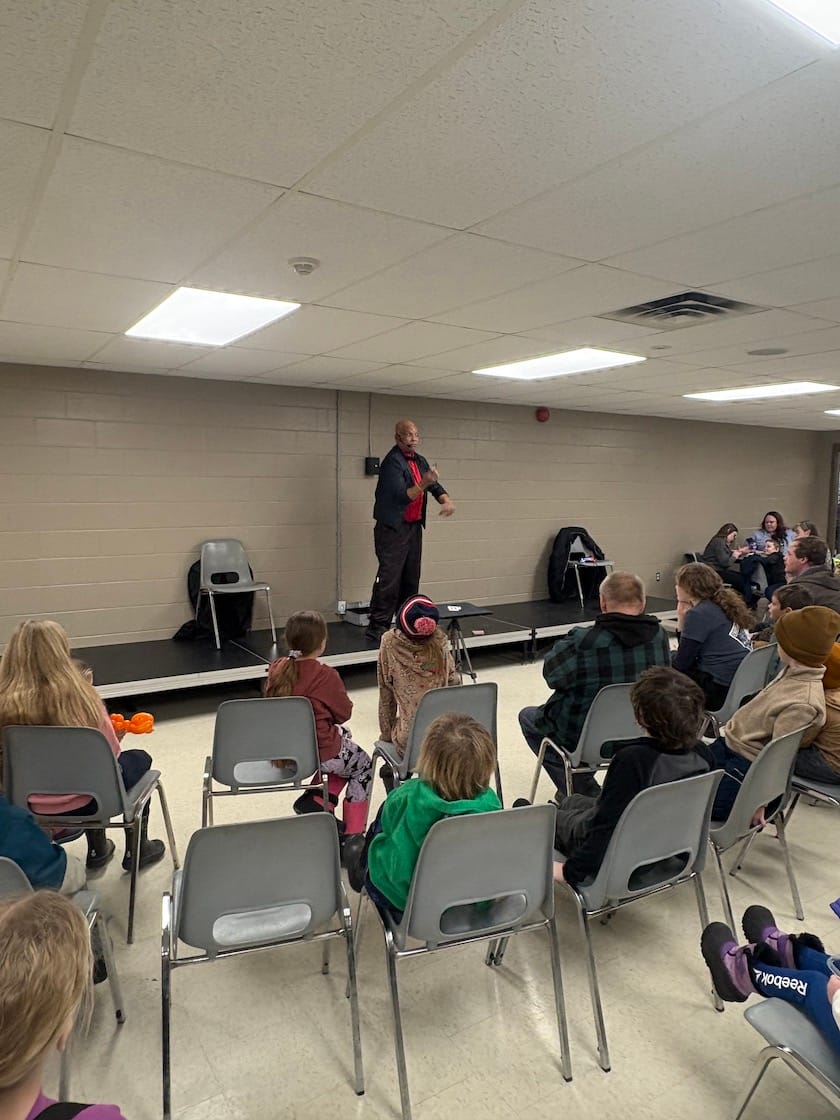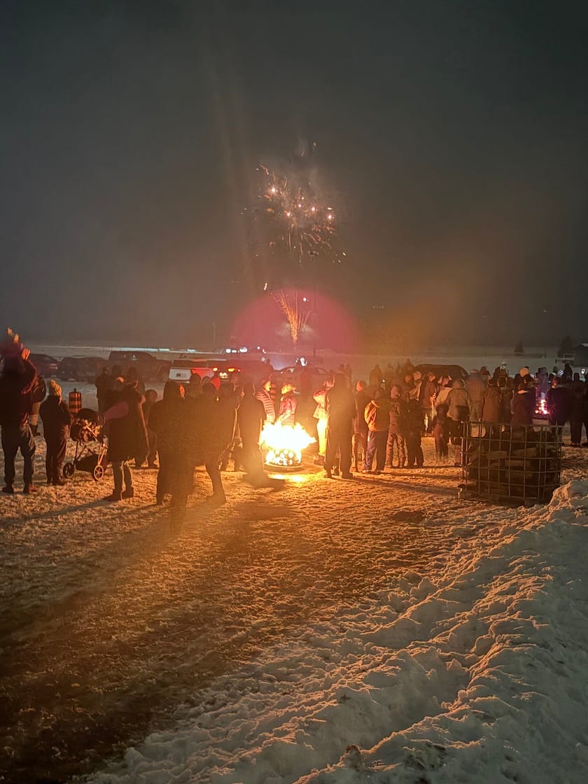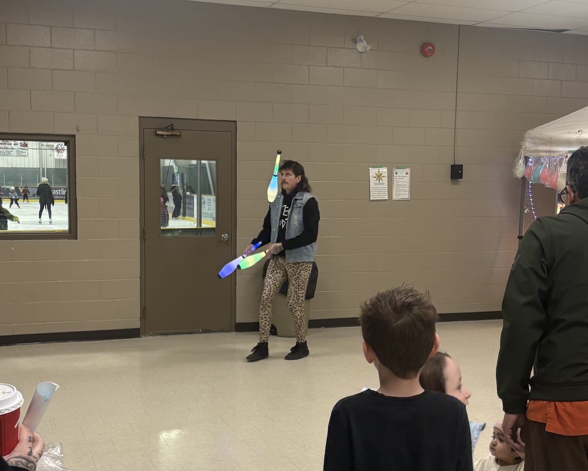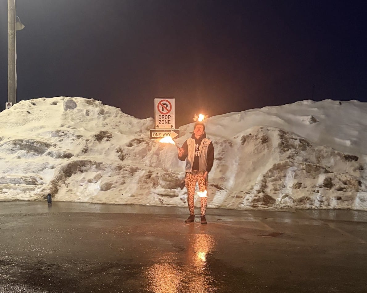 Bringing the heat – The Town of Minto, in partnership with Minto Fire, hosted its annual Fire and Ice event on Feb. 16 at the Palmerston and District Community Centre Complex. Originally planned for New Year’s Eve, the event was rescheduled due to poor weather conditions. PHOTO 1: A big fire pit kept guests warm during the cold night while fireworks exploded in the sky. PHOTO 2: Fire performer Steve Goodtime showed off his skills by juggling fire. PHOTO 3: Goodtime performing for Fire and Ice guests. PHOTO 4: The Magic Man pulling out all the tricks to entertain the crowd. Submitted photos.