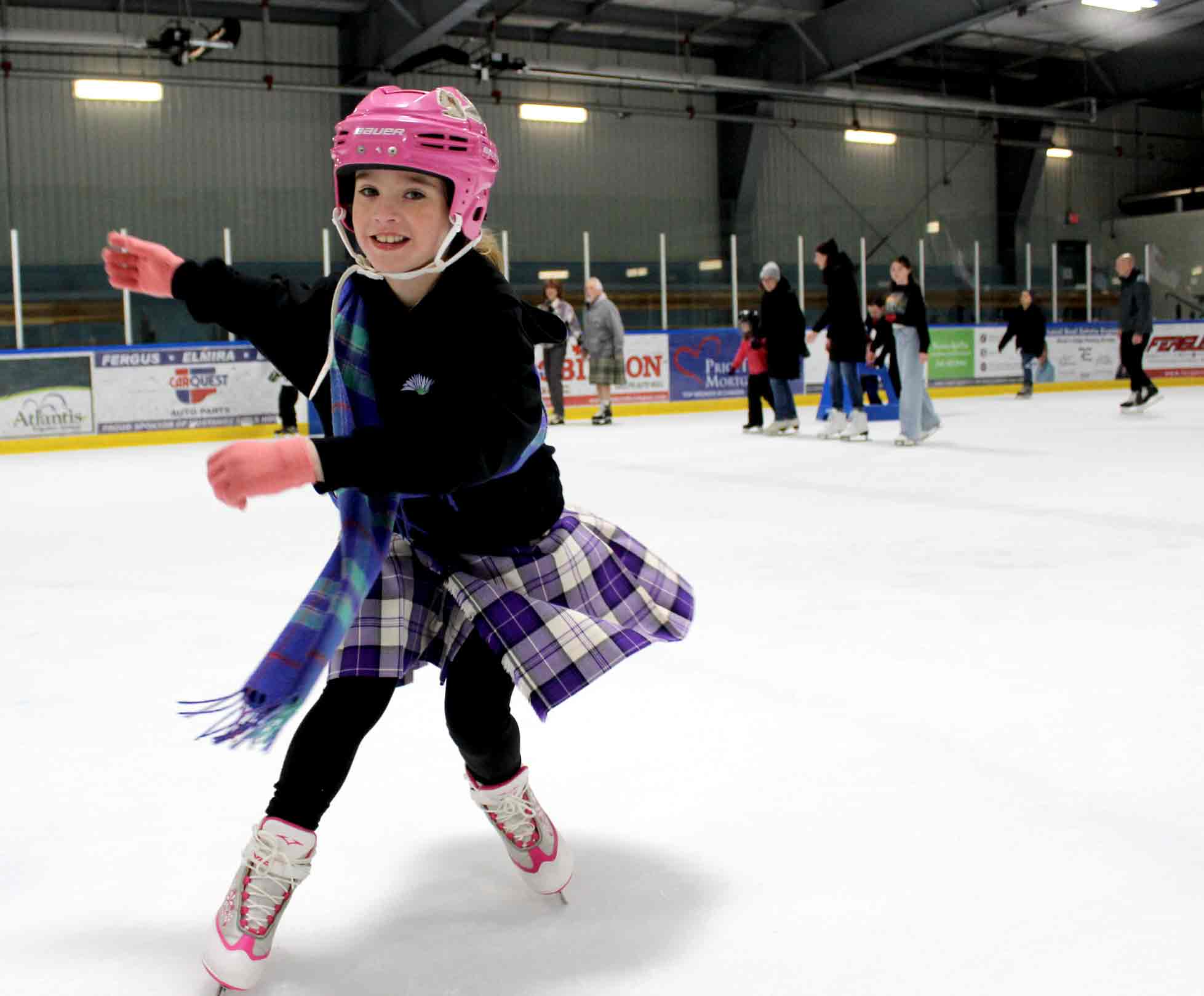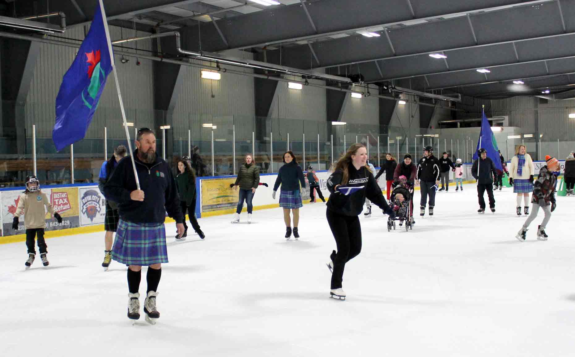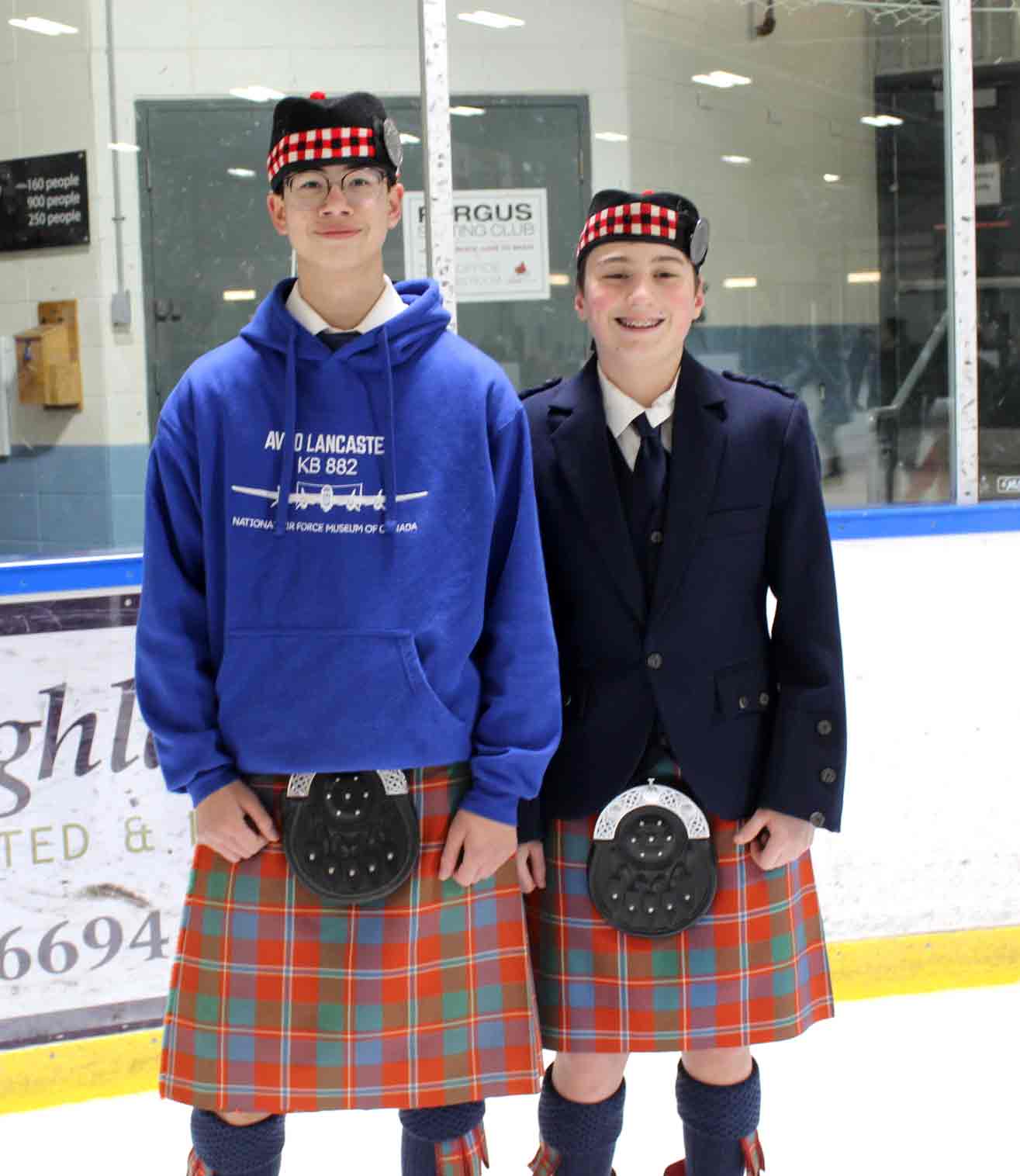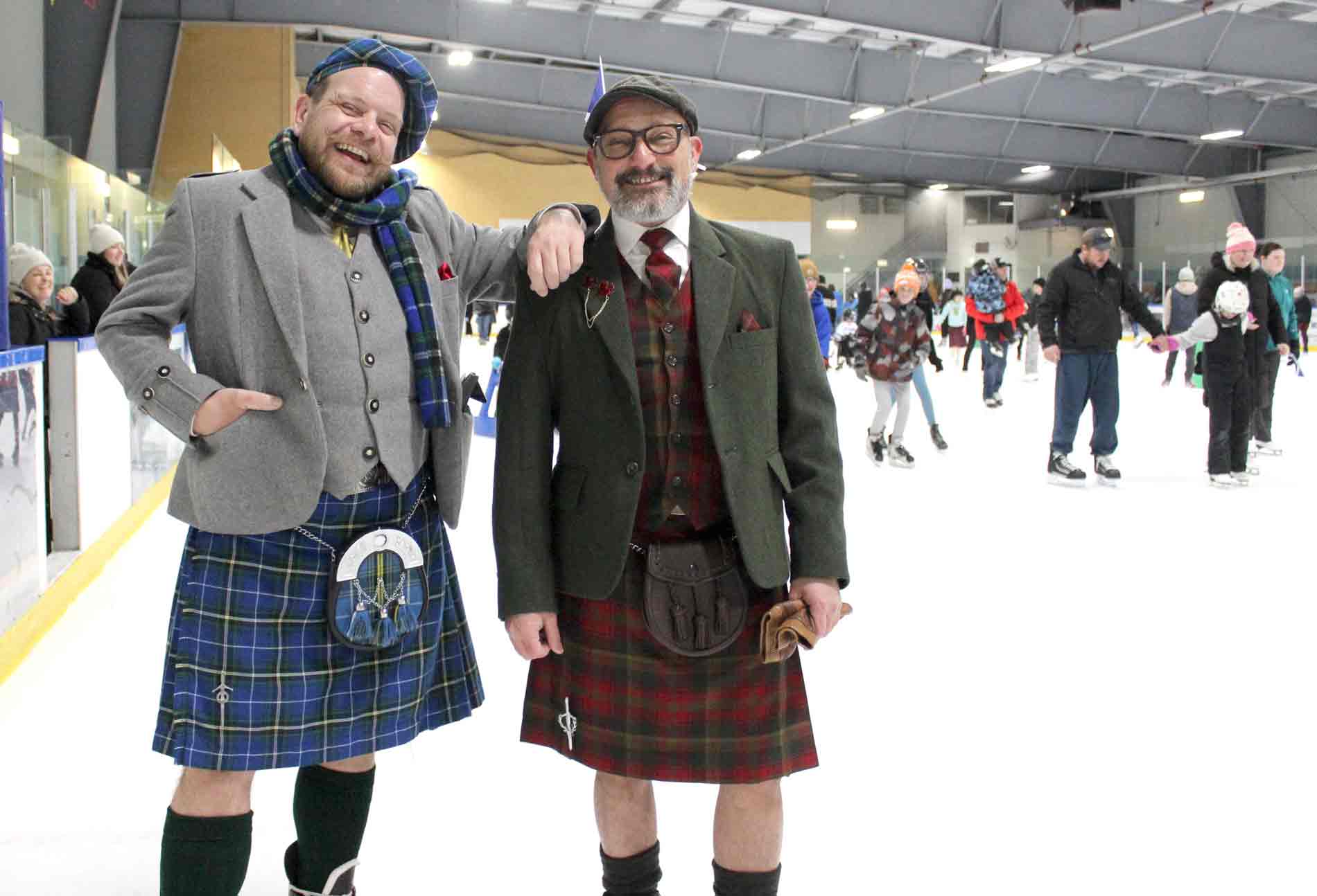 Kilt skate – Communities across Canada and Scotland held kilt skates over the weekend, including one at the Centre Wellington Community Sportsplex in Fergus on Feb. 22. The Fergus International Kilt Skate event was hosted by the Fergus Scottish Festival and included highland dance performances, music from the Fergus and Grand Celtic pipe bands, hot chocolate and Sheena’s Scottish Shortbread. PHOTO 1: Gregory Finney, left, and Malcolm Vella, who travelled from Mississauga to attend the kilt skate, said a similar event the previous day in Toronto paled in comparison to the one in Fergus. PHOTO 2: Blue Bonnet Lassies dancer Pearl Dodds, 9, pulled off some spins on the ice. PHOTO 3: The event kicked off with a performance from the Blue Bonnet Lassies. Kailey Eisen, right, couldn’t help but join in during Brooke Bailey, left, and Maribelle McBroom’s performance. PHOTO 4: From left, Brooke Pembleton, Alex Gerber, Mary MacIsaac, Hannah Pembleton, Lennon Pembleton, Ellea Pembleton, Leiona Speer and Margaret MacIsaac. PHOTO 5: Tristan Huehn, 7, smiled wide and wore tartan proudly during the kilt skate. PHOTO 6: Mary Meads helping Louise Meads. PHOTO 7: Tartans and flags on the ice. PHOTO 8: Sebastian Lung, left, and Merrit Drake did some laps of the ice before playing drums with the pipe band. PHOTO 9: From left, Noah Nicoll, Nia Nicoll and Carley Young show their Scottish pride. Photos by Robin George