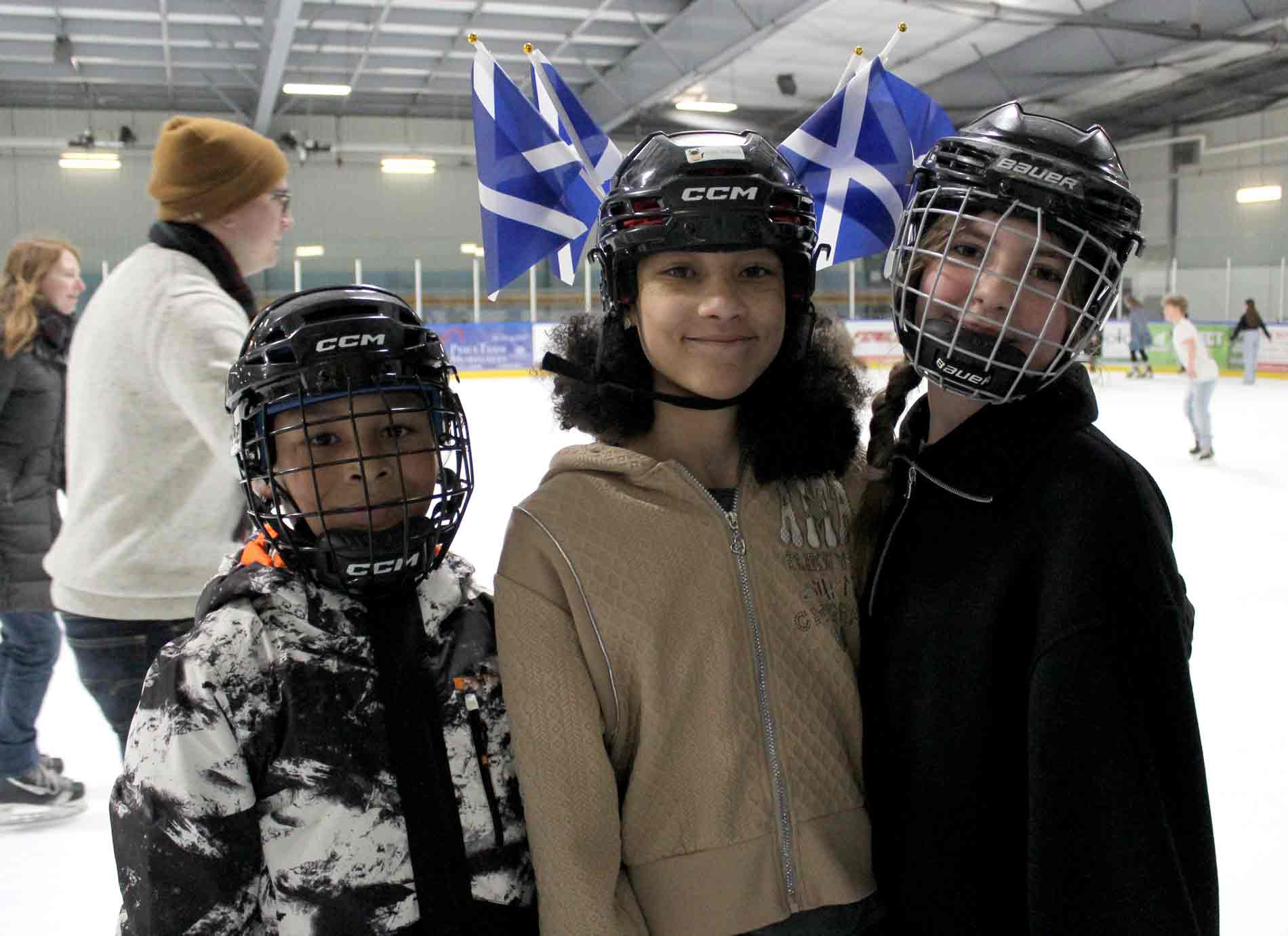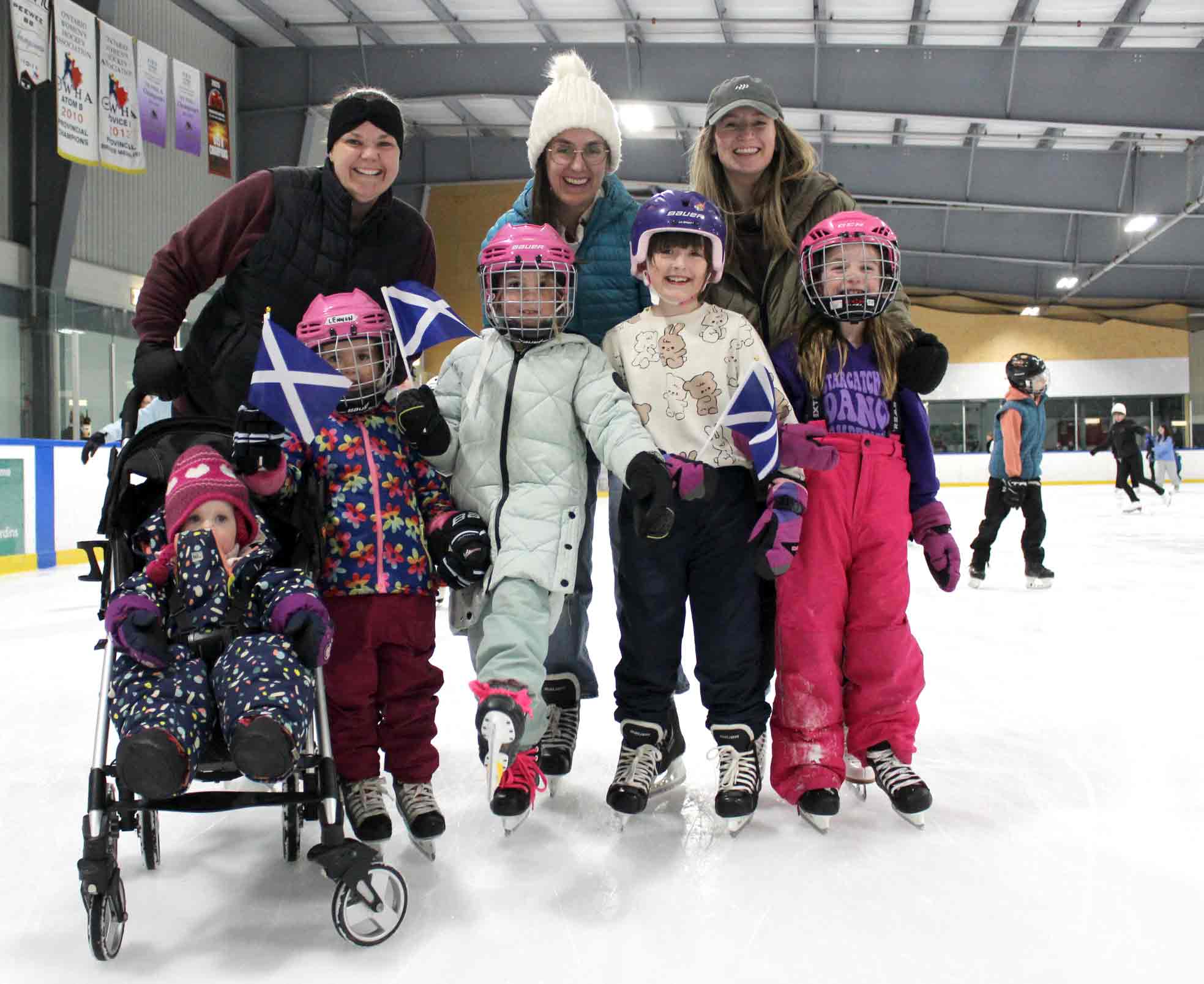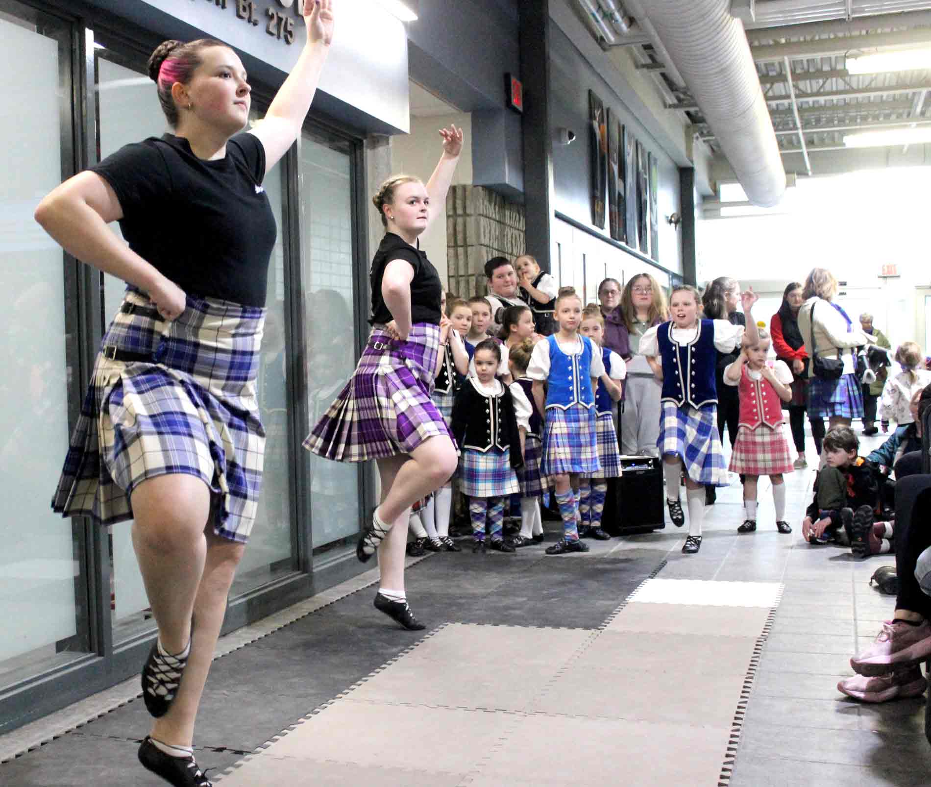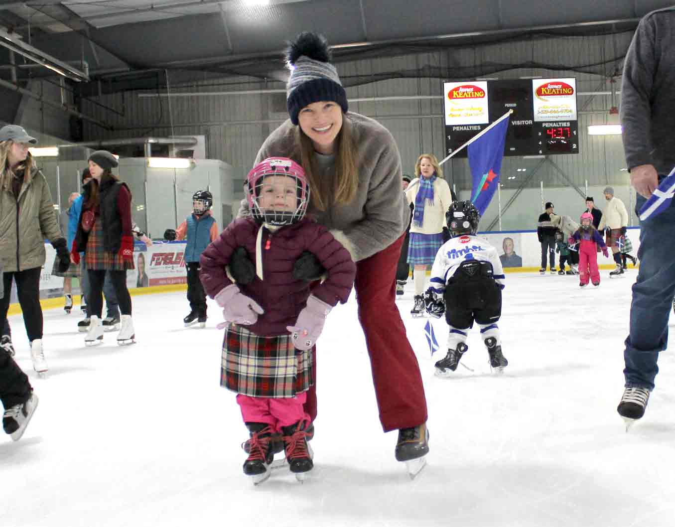 Kilt skate – Communities across Canada and Scotland held kilt skates over the weekend, including one at the Centre Wellington Community Sportsplex in Fergus on Feb. 22. The Fergus International Kilt Skate event was hosted by the Fergus Scottish Festival and included highland dance performances, music from the Fergus and Grand Celtic pipe bands, hot chocolate and Sheena’s Scottish Shortbread. PHOTO 1: Gregory Finney, left, and Malcolm Vella, who travelled from Mississauga to attend the kilt skate, said a similar event the previous day in Toronto paled in comparison to the one in Fergus. PHOTO 2: Blue Bonnet Lassies dancer Pearl Dodds, 9, pulled off some spins on the ice. PHOTO 3: The event kicked off with a performance from the Blue Bonnet Lassies. Kailey Eisen, right, couldn’t help but join in during Brooke Bailey, left, and Maribelle McBroom’s performance. PHOTO 4: From left, Brooke Pembleton, Alex Gerber, Mary MacIsaac, Hannah Pembleton, Lennon Pembleton, Ellea Pembleton, Leiona Speer and Margaret MacIsaac. PHOTO 5: Tristan Huehn, 7, smiled wide and wore tartan proudly during the kilt skate. PHOTO 6: Mary Meads helping Louise Meads. PHOTO 7: Tartans and flags on the ice. PHOTO 8: Sebastian Lung, left, and Merrit Drake did some laps of the ice before playing drums with the pipe band. PHOTO 9: From left, Noah Nicoll, Nia Nicoll and Carley Young show their Scottish pride. Photos by Robin George