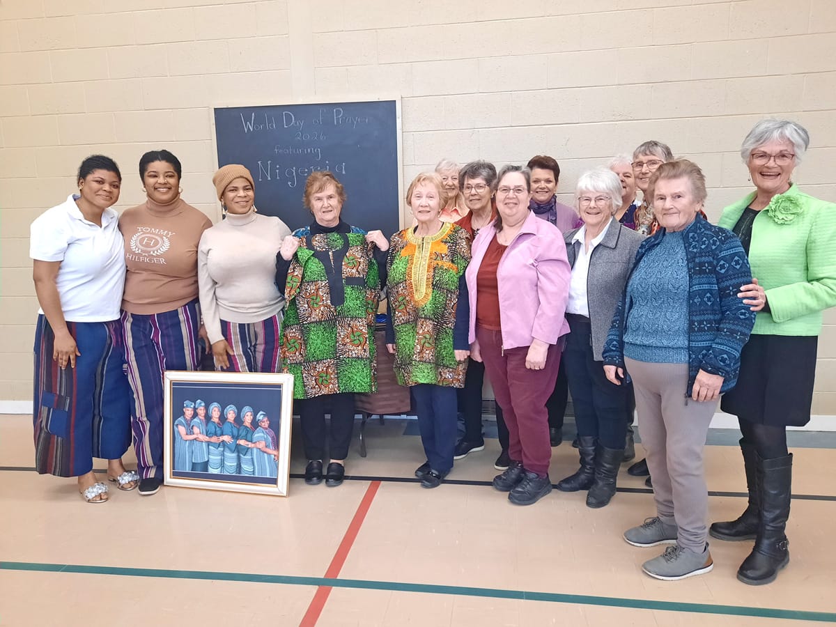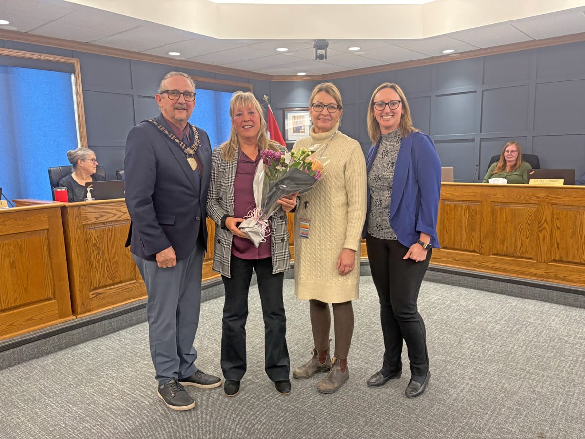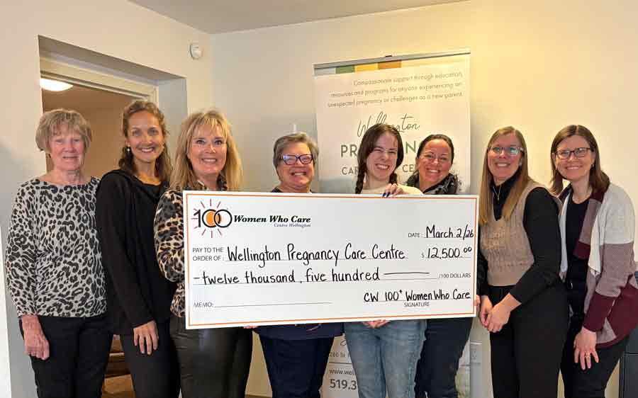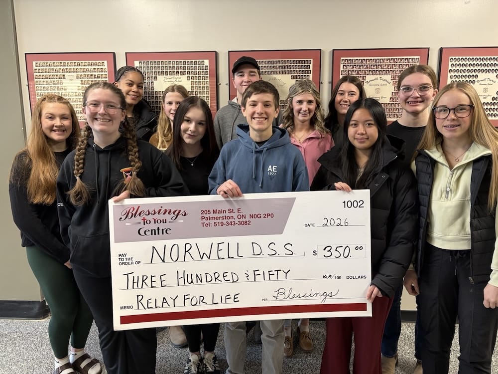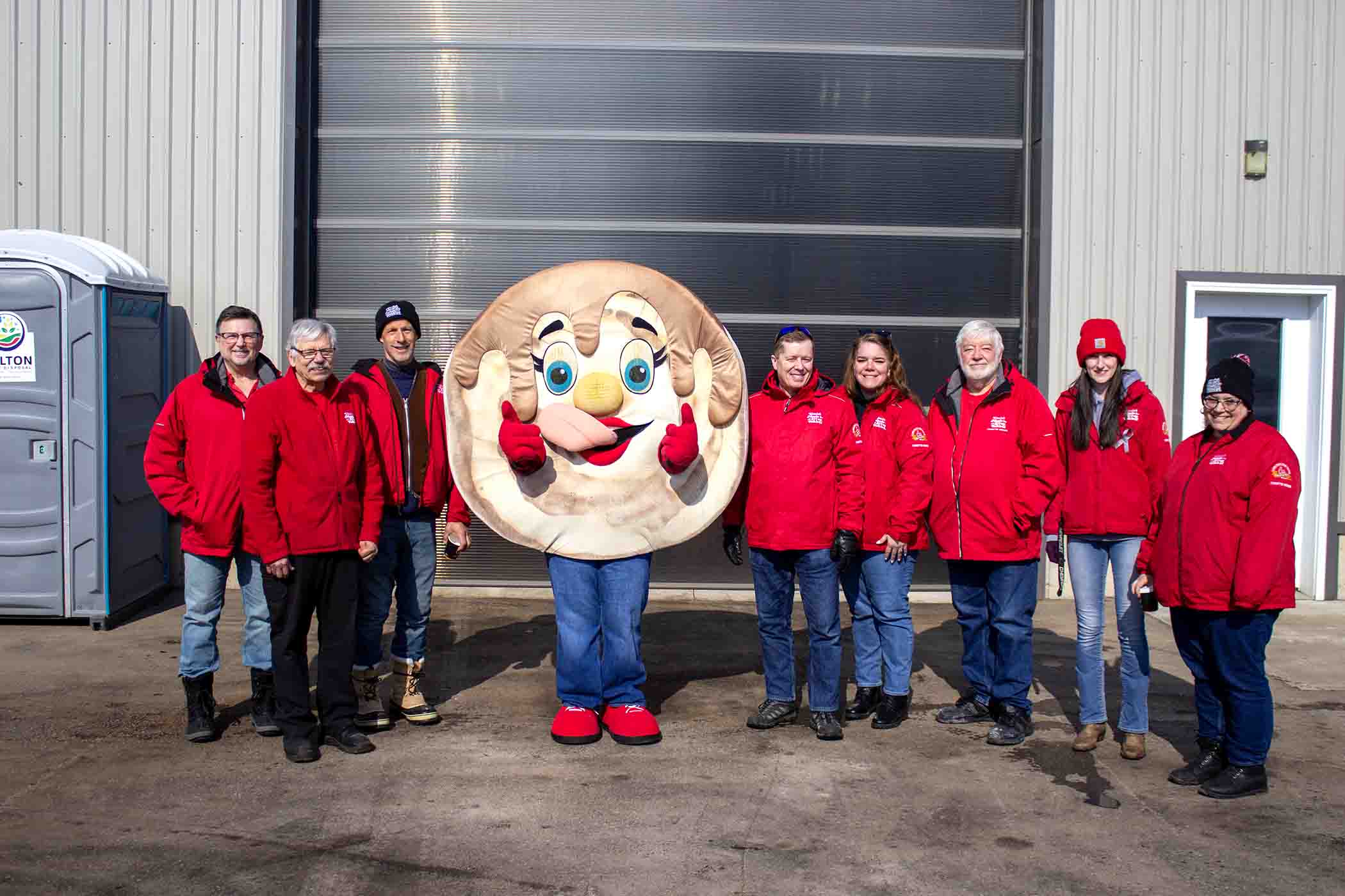 Sugary sweet – The Waterloo Wellington Maple Producers held its annual first tree tapping ceremony for the 2026 maple syrup season at Maple Tree Farm in New Dundee on Feb. 28. PHOTO 1: Maple Tree Farm owner Andrew looks on as Elmira Maple Syrup Festival (EMSF) chairperson Marc McInerney taps a large maple tree. PHOTO 2: EMSF member Caitlin McCabe taps a large maple tree under the watch of farm owner Andrew. PHOTO 3: Gunther Kramer, left, and Elmira Maple Syrup Festival (EMSF) chairperson Marc McInerney, right, presented the EMSF producer of the year award to Tom Snyder of TDS Farms located in Montrose. PHOTO 4: Volunteers worked hard to prepare the free breakfast on offer at the event. Breakfast consisted of pancakes, sausage, coffee and apple cider. PHOTO 5: From left, Marc McInerney (EMSF Chairperson), Dave Unrau, Jeff Hutchinson, Flapjack, Gunther Kramer, Maxine Metzger, Drew McGovern, Caitlin McCabe, Mary Blanchard from the Elmira Maple Syrup Festival pose for a photo. PHOTO 6: Drew McGovern and Jeff Hutchinson assisted the EMSF mascot Flapjack down an icy slope. PHOTO 7: Waterloo Wellington Maple Producers chair person Kevin Snyder addresses the crowd. Photos by Ellouise Thompson