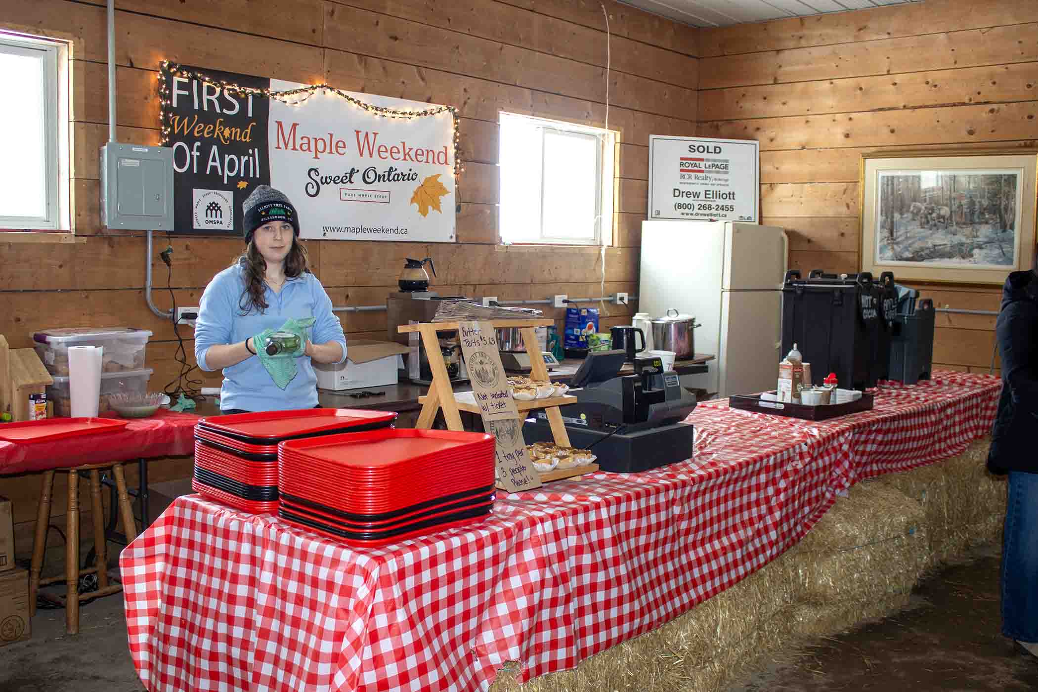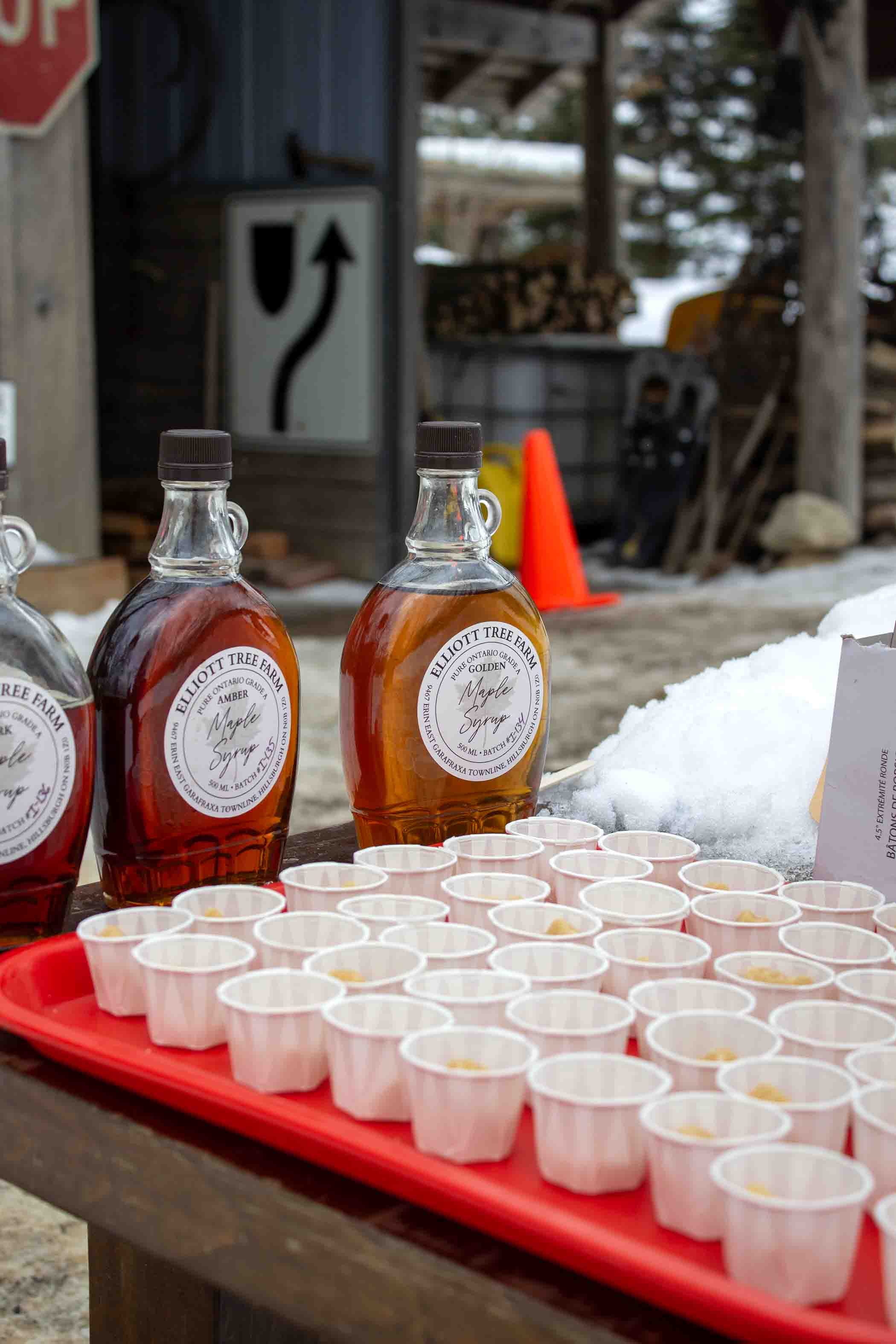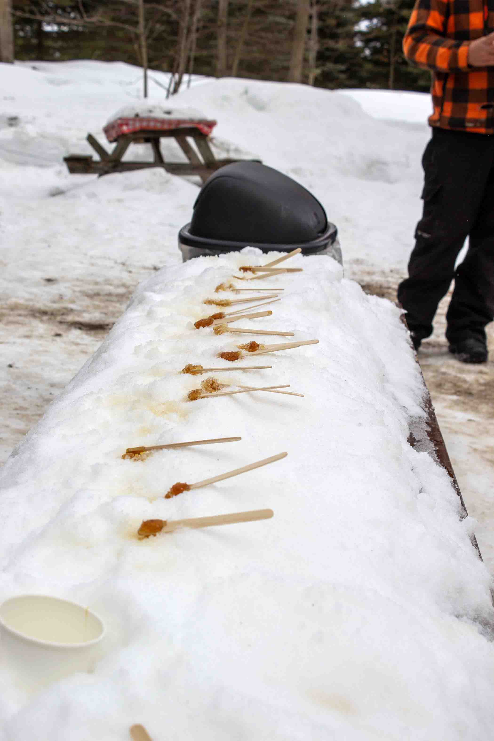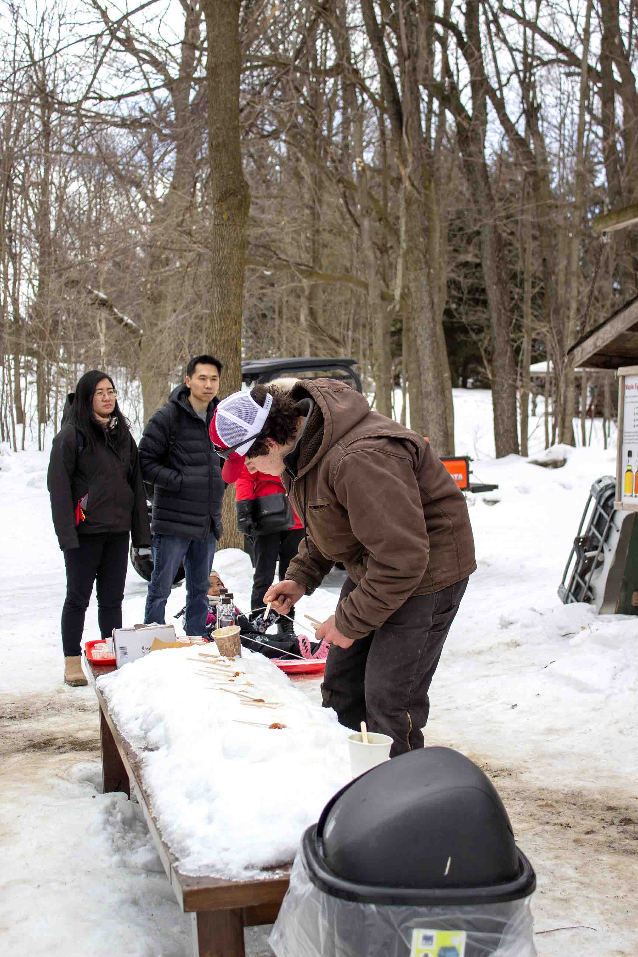 True Canadian – Elliott Tree Farm near Hillsburgh welcomed guests from as far as Australia to embark on a true Canadian maple syrup experience on Feb. 28. Guests were invited to indulge in an all-you-can-eat pancake breakfast, syrup tastings and a brief history lesson on the origins of maple syrup. PHOTO 1: An employee makes maple syrup taffy on snow. PHOTO 2: Some of the items on display in the farm’s maple syrup museum included vintage syrup tapping tools, tree cross sections, Indigenous artifacts and an array of other maple syrup related memorabilia. PHOTO 3: The farm offered samples of their maple sugar candy as well as some maple taffy over snow.