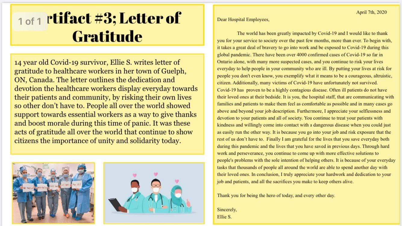 Her students wrote gratitude letters to essential service workers, created book spine poems to express their feelings during the lockdown, and curated virtual learning portraits of items that helped them learn at home.