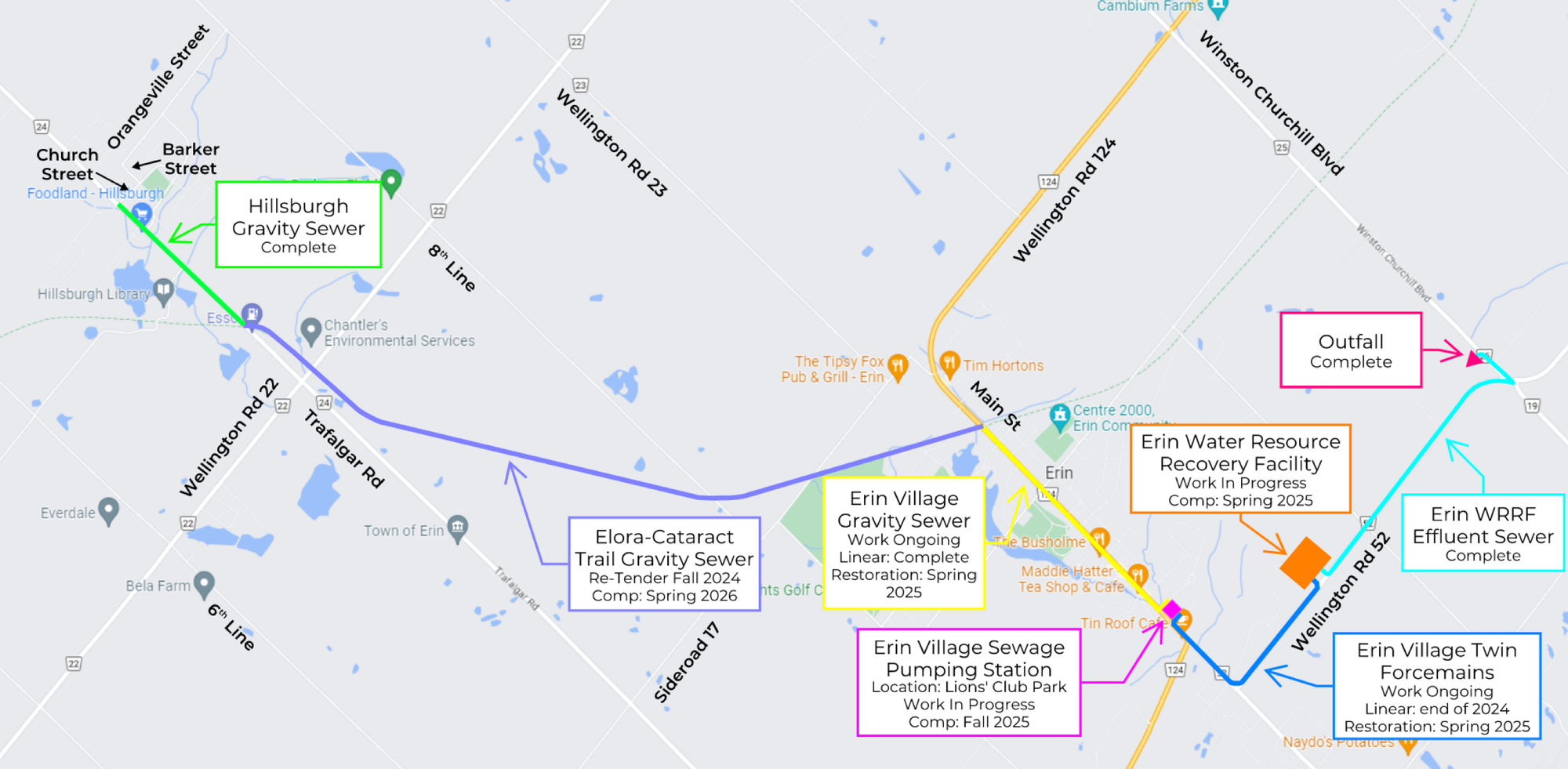 The next stop on the project map is the Erin village gravity sewer, which connects the pipe work starting in Hillsburgh to a sewage pumping station in Erin.