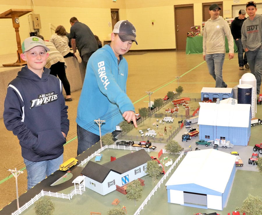 Farm toy show - A total of 18 vendors, a mix of new and returning regulars, welcomed attendees to view their wares. Matthew, right, and Carter Baker appreciated all of the details that were included in this intricate model farm.
