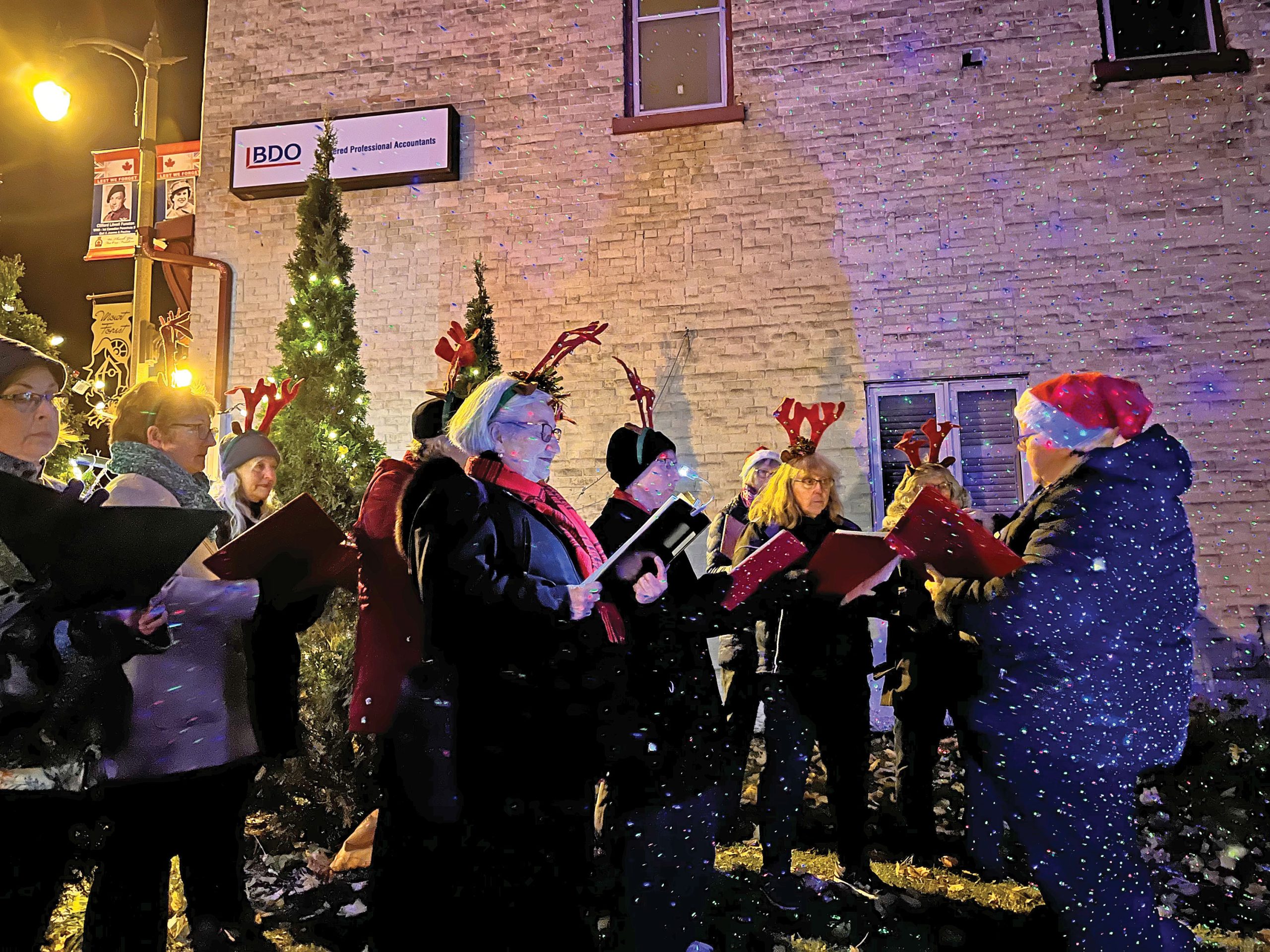 A choir’s voices reverberated off the outer walls of the Mount Forest Tavern as they sang carols and brought Christmas cheer during the tree lighting.