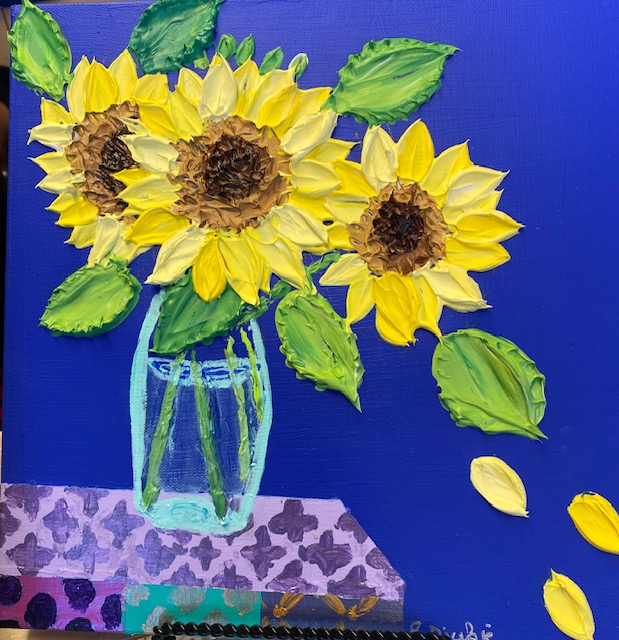 Djukic has mastered her technique of adding acrylic paint to the modeling paste, creating a 3D effect in her art. She fell in love with the way the tools worked together.