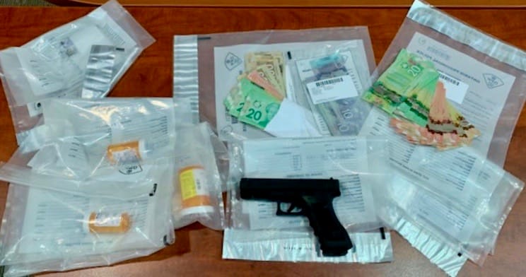 Police later executed two search warrants at a residential property on Highway 7 and seized a replica handgun as well as "a large quantity of Canadian currency, opioids and trafficking materials."