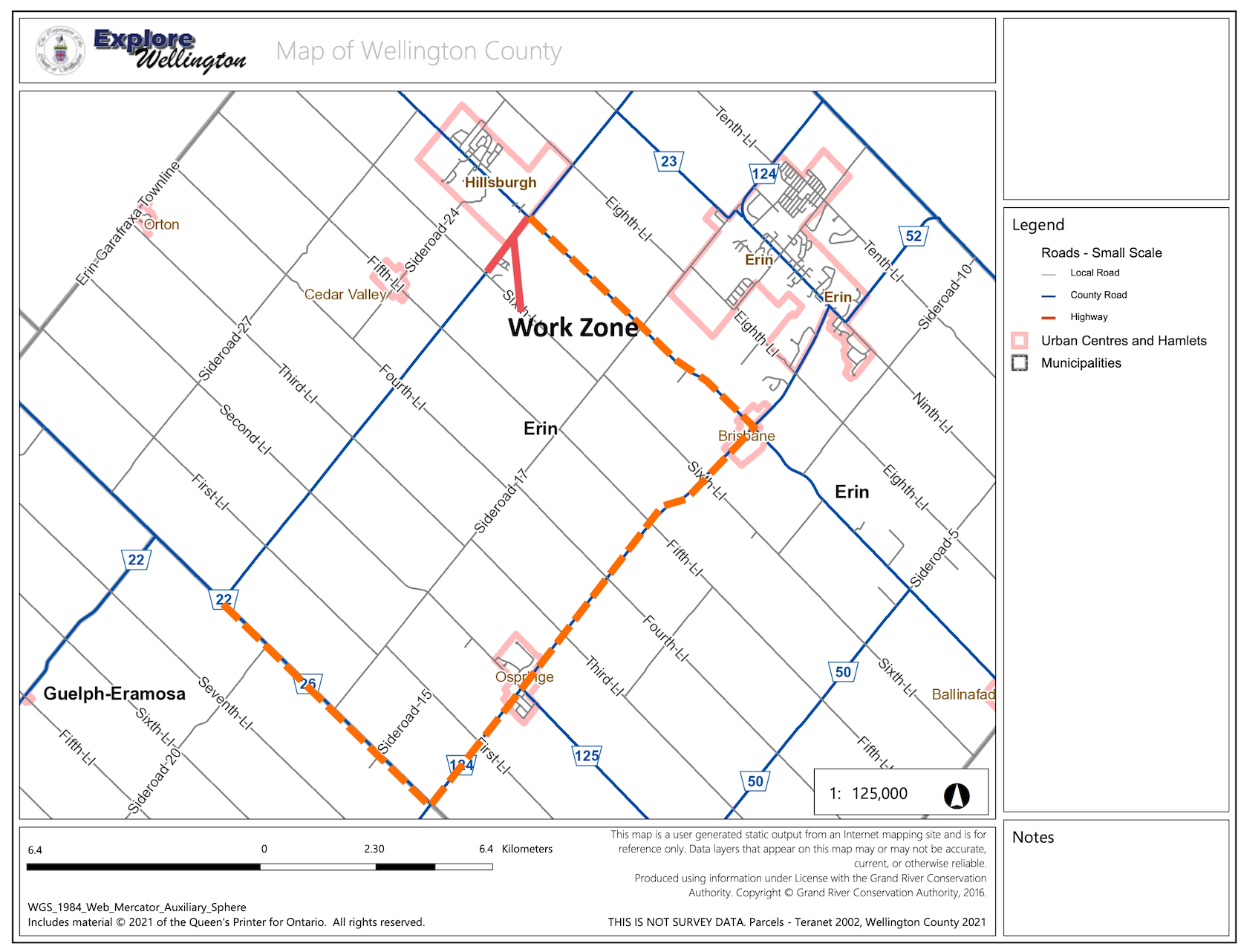 County roads staff will be replacing a culvert on Wellington Rd. 22, between 5th Line and Wellington Rd. 24, in the Town of Erin. Work will begin on Aug. 5 and is anticipated to be completed by the end of September. The road will be closed, with no emergency services access, starting Aug. 18 for approximately four weeks. During the closure, traffic will be re-routed per the attached detour route. For the duration of the project, delays are expected and an alternate route is recommended.