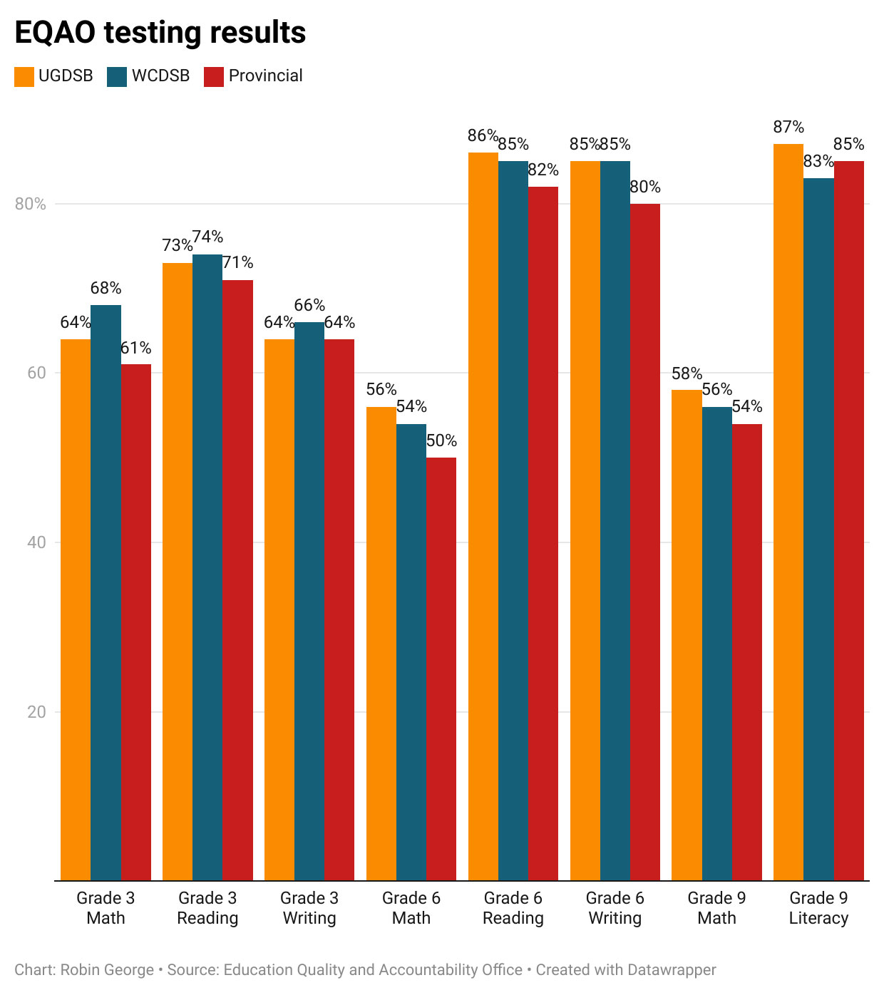 WELLINGTON COUNTY – Students at the Upper Grand and Wellington Catholic district school boards performed better, on average, than their provincial peers on tests from the Education Quality and Accountability Office (EQAO).