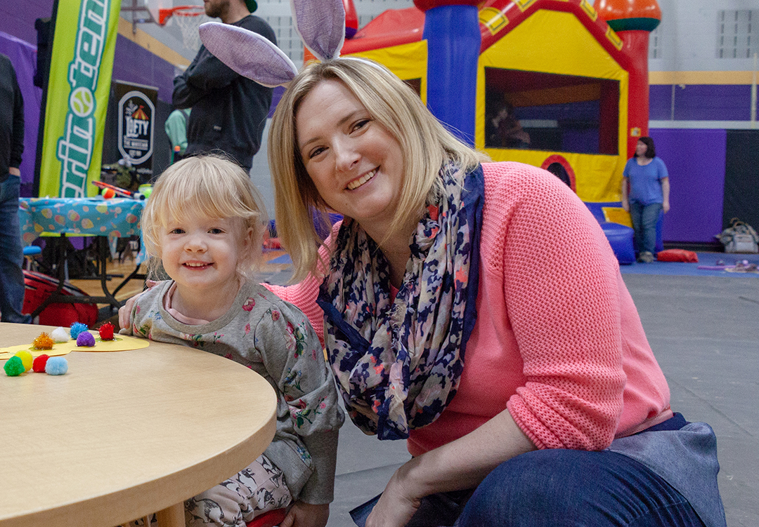 Ella Sharp, 3, from Erin and her mom Diana Arajs had fun getting crafty at the Station Road Co-op Nursery School bunny brunch on April 13 at Centre 2000.   Photo by Danielle Cargill