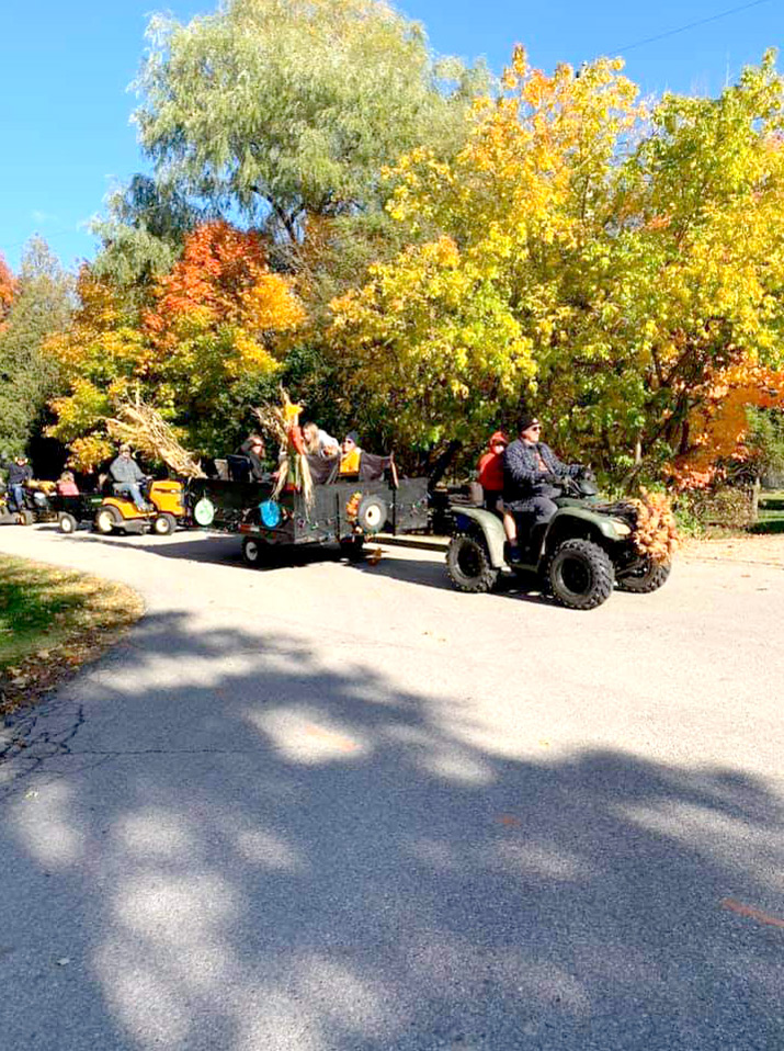 Lots to be grateful for – What can you do if COVID-19 ruins your Thanksgiving plans? Heather Quigley and Laura Forbes came up with the answer. They suggested the village of Everton could hold a parade as a way for people to meet up on Thanksgiving day and still be physically distanced. With support from members of the community, they gathered various garden vehicles and the parade wound its way through all the streets in town. If residents weren’t part of the procession, they came out to wave and greet the procession. Submitted photos