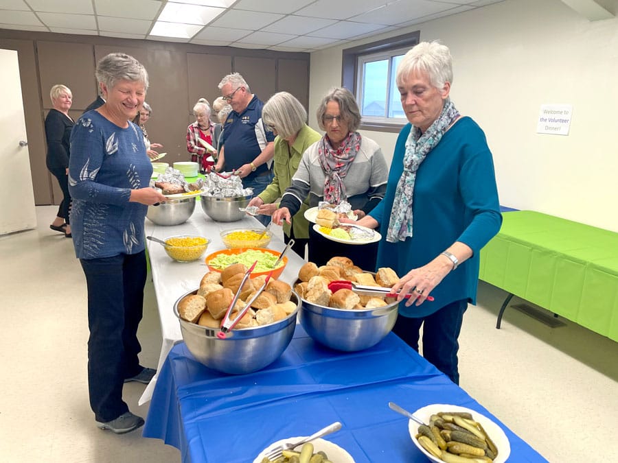 Volunteers dine out – Council members cooked and served dinner for close to 200 local volunteers at a Town of Minto Volunteer Appreciation Dinner on April 19 at the Clifford Community Centre. Volunteers pass through the food line. Photos by Patrick Raftis